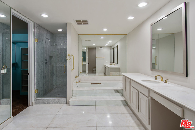 Open, updated, single level, 2,090 sq.ft. 2bd/ 2.5 bth condo on the 2nd level. This bright inner facing unit with a great easterly view features Hardwood flooring, fireplace in the living room, large balcony with access from the living room & master bedroom. The Modernized kitchen has marble countertops with matching tile backsplash, and stainless-steel appliances. A breakfast area adjoins the kitchen furnished with a built-in wet bar. Master bedroom features a huge walk-in closet with a center island. Property has 3 parking spaces (parking space has a electric car charger), a storage room, and guest valet parking. Complex amenities include: 5 pools, 2 tennis courts, a clubhouse, state of the art gym, and 24-hour security.
