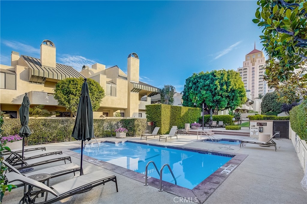 Proud to introduce this hard-to-find contemporary one-level condo at the incredible Century Hill! Just outside the elevator, you enter the unit through impressive double doors as you are welcomed by 10 ft. high ceilings and a spacious and open living room/dining/den area that is ideal for entertaining guests. Explore the high-end kitchen and its modern finishes (Sub-Zero & Miele appliances), including an expansive chef island that is perfect for multiple seating. The extended balcony stretches alongside the northern side of the unit with multiple convenient access points from room to room. The large primary suite creates comfort and needed space that is expected with such a luxury unit and is complemented by an ensuite bathroom with two spacious walk-in closets and a bonus station area. The secondary bedroom also includes an ensuite bathroom. The abundant resort-style amenities include five swimming pools, two tennis courts, a racquetball court, clubhouse, gym, 24/7 security, door attendants, package delivery, and valet parking. Situated in the heart of Century City and moments away from Century City Westfield mall, Beverly Hills, West Hollywood, and Westwood, this type of unit just doesn't come to the market very often, and it is ready for you to own!