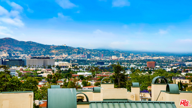 Beautiful, Coveted Penthouse in Century Hill. With over 2,900 square feet, this hard to find inside, quiet property offers fantastic views of the city and mature landscaping. Upon entering you are greeted with an open, large LR/DR/Bar and den complete with fireplace. Lovely hardwood floors grace the main living area. High vaulted ceilings offer an abundance of openness and volume. Large windows and sliding glass door(s) line one wall allowing light to pour in. A large Master suite complete with steam shower, separate soaking tub and 2 walk-in closets provides space and serenity. A second bedroom located in a separate wing provides privacy. An upstairs loft with bathroom and closet can be used as a bedroom. A large rooftop deck with views of Downtown and Century City is the perfect spot to dine alfresco.