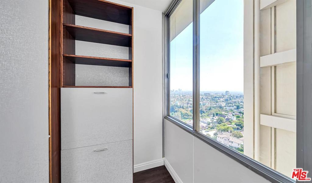 Located in the desirable South Tower of Century Park East, this high floor, one-bedroom condominium offers unobstructed jetliner views from Beverly Hills to DTLA. The freshly painted unit offers floor-to-ceiling windows and balcony in a quiet location within the building with only one common wall. The full service complex offers a host of luxurious amenities including a large security staff, 24 hr. doorman, valet and guest parking, switchboard, heated pool and sun deck, state-of-the-art fitness center, tennis court, private pet play-land, plus acres of grassy lawns and flower gardens. It is only two blocks to the Westfield Century City mall with upscale dining, shopping, groceries, and movies and nearby to golfing and city parks. Hot and cold water and central heating and A/C are included in the low HOA dues.