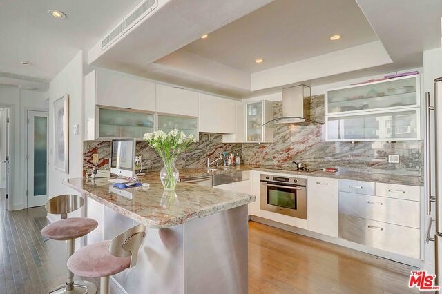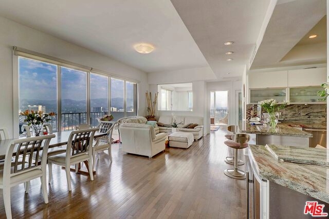 No need to look any further for beauty and Luxury in a Century City condo with an unobstructed breathtaking panoramic view of the Hollywood Sign, Beverly Hills and Los Angeles. Enjoy a recently renovated 2+2 condo in a total amenity complex. Designer granite counters, display kitchen cabinets, breakfast bar, raised ceilings with recessed lights, decor window coverings, huge crystal shower with 2nd shower over bathtub, raised bowl vanities and hardwood floors. Enjoy state of the art fitness center, saunas, heated giant swimming pool, resident and guest valet parking, doorman, electric car stations, houseman, switchboard, business center, private pet playland and acres of grassy lawns and flower gardens. 2 blocks to Westfield Mall, golfing and Beverly Hills. 10 minutes to UCLA, 20 minutes to LAX and Cedars Sinai Medical Center. Heating, Air Conditioning included.