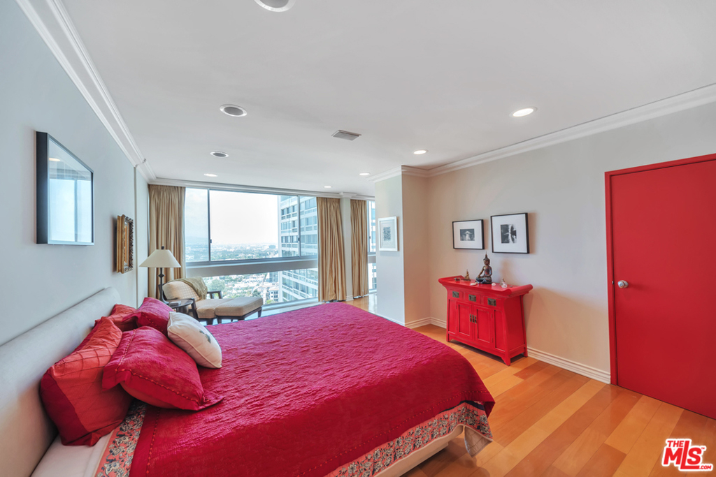 Beautiful corner unit with jetliner views overlooking Hillcrest Country Club, Downtown, the Ocean and Hollywood Sign too! Remodeled with dramatic coffered ceiling, hardwood floors and fabulous recessed lighting. This 3 bedroom condo has been converted to a two plus den, although it can easily be switched back by just adding the wall. Located in Century City this architecturally significant building is designed by the iconic IM Pei. Valet parking, concierge, pool, gym, dry sauna and two tennis courts. HD cable with one movie channel is included with HOA. Location, Location, Location! Just perfect! Easy to show at a moments notice! Owner will look at offers the weekend of the 29th.