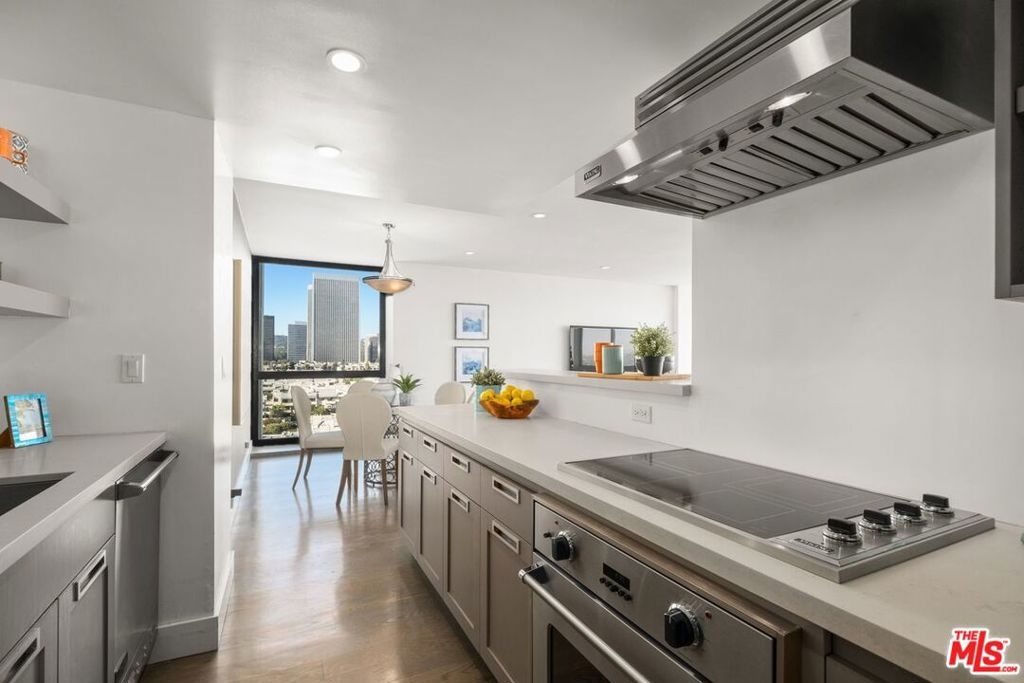 Gorgeous remodeled 2 bedroom, 2 bathroom condo in the prestigious I.M. Pei architectural building Century Towers with unobstructed views from the Hollywood Hills to Downtown, Beverly Hills and Century City. All windows double-pane. Newer renovation with lovely hardwood floors and recessed lighting throughout. Custom designed kitchen with Viking appliances, soft-closing drawers, glass tile splash-back and breakfast bar. Hook up in the unit for washer and dryer. The second bedroom has custom built-in shelving so could be used as an office. Master has a large walk-in closet and a beautifully updated bathroom with a huge shower and glass features. Guard gated community with 24-concierge, valet parking, pool, tennis courts, fitness center and electric car-charging stations.