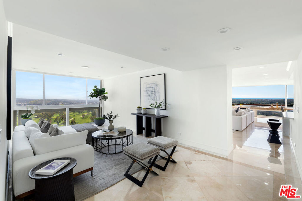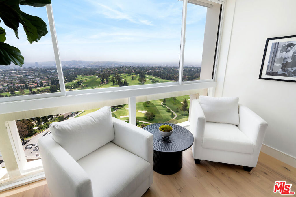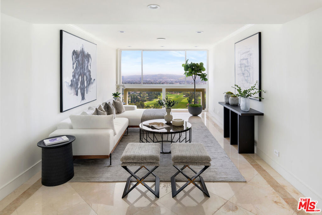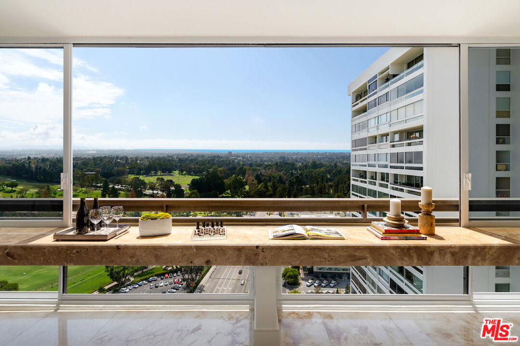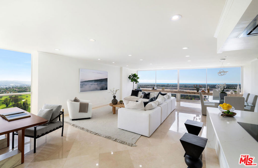 Rare corner unit on the 24th floor in the highly desirable Century Towers in the heart of Century City with panoramic views of the city, ocean, mountains, and Hillcrest Country Club golf courses. This meticulously remodeled unit features marble and hardwood floors throughout, custom closets, recessed lighting, and top of the line appliances. Grand double doors enter into the dramatic sitting room with floor to ceiling windows leading into the open concept living, dining and kitchen. Two spacious bedrooms with equally exquisite views complete this nearly 1,700 sqft home. This 24 hour full-service building includes guarded entry, doormen, valet parking, tennis courts, fitness center, sauna, outdoor swimming pool, and immature manicured grounds.