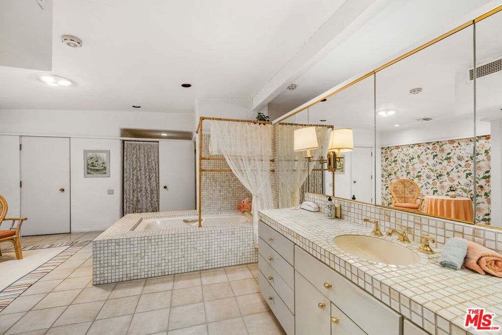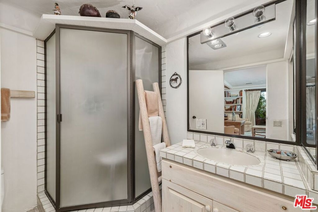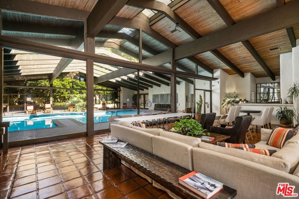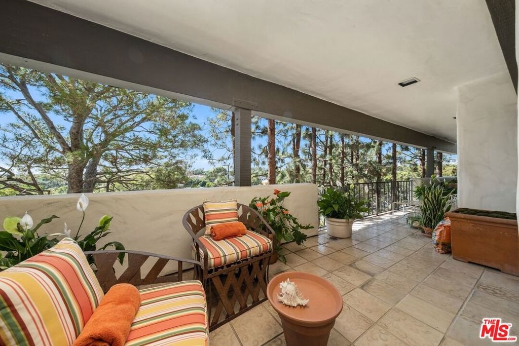 Welcome to Century Woods Estates - the most extraordinary residential enclave the world has to offer. The forward-thinking of esteemed Hacienda-style architect Cliff May is exquisitely expressed in this 4896 square foot, single-level romantic condominium. A sense of Santa Fe welcomes the visitor to the luxurious open living room. A cozy library area with en-suite bath, a wet bar, a dramatic fireplace and a generous dining area combine to make the resident want to entertain. Three extensive covered balconies provide the pleasure of appreciating the beauty of the sentinel pines in the heart of this small forest in the center of Century City. Outside are Century Woods' amenities: 24-hour guarded entrance (announced visitors only), fitness center, interior and exterior pools and spas, sparkling flowing waterfall, recreation building with caterer's kitchen, and tennis court. Walk to Westfield Mall and close to all Century City and Beverly Hills have to offer. Century Woods remains THE sought-after sanctuary for residents seeking a sophisticated, private, and secure environment. Parking: 2 side-by-side. Per the HOA the unit is 4896 Sq. Ft. Generous storage area in garage. Convertible den w/ en-suite bath has the potential to be a 4th bedroom. Attractively Priced with room for renovation.