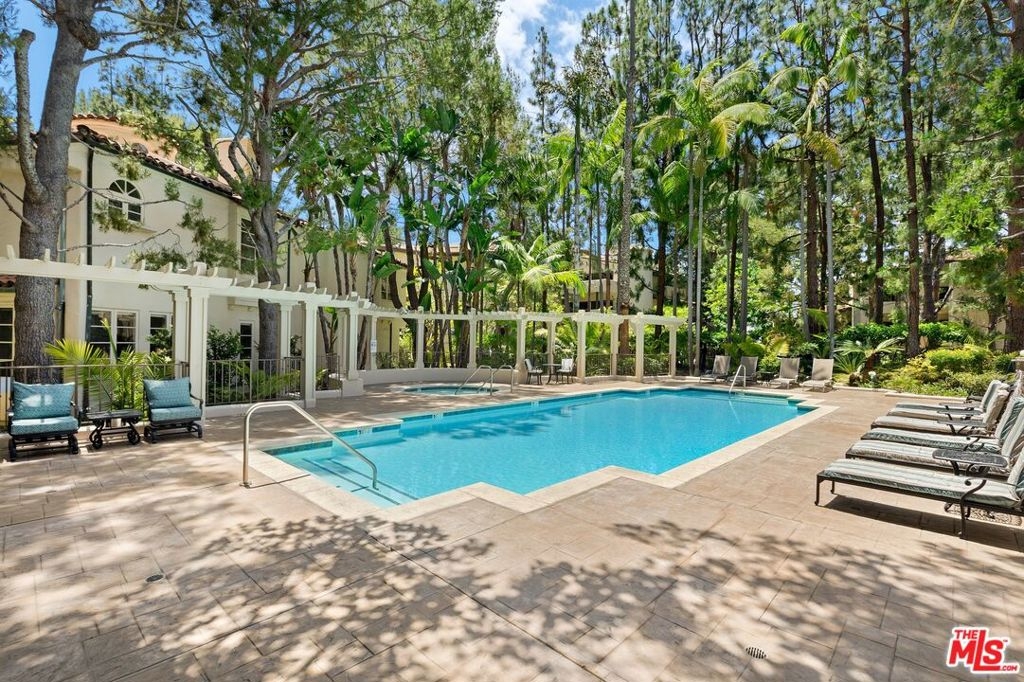 Don't miss this opportunity to see a rarely available, expansive, single-level 4-bedroom, 5.5-bath residence in the coveted guard-gated enclave of Century Woods. Originally designed by legendary architect Cliff May, this approximately 5,155 sq ft home in a low-rise building offers a private, serene setting in the heart of Century City. Positioned to capture tranquil west-facing treetop views, the home provides four expansive balconies ideal for entertaining or unwinding in style. The chef's kitchen features top-of-the-line Viking and Sub Zero appliances, a wine refrigerator, custom cabinetry and elegant finishes. A grand entry opens to a spacious living room, formal dining room, den/library/office, and central wet bar, creating a seamless flow for both everyday living and large scale entertaining. The spacious primary suite includes a sumptuous bath, fireplace, multiple closets and a private terrace. There are three additional ensuite guest bedrooms, generous storage, and refined attention to detail throughout. Amenities include a fitness center, indoor and outdoor pools and spas, a clubhouse with caterer's kitchen, North-South tennis court, and lush landscaped grounds with cascading waterfalls. Enjoy fine dining, world-class shopping and all of the premier offerings Century City and the Westfield Century City Mall have to offer.