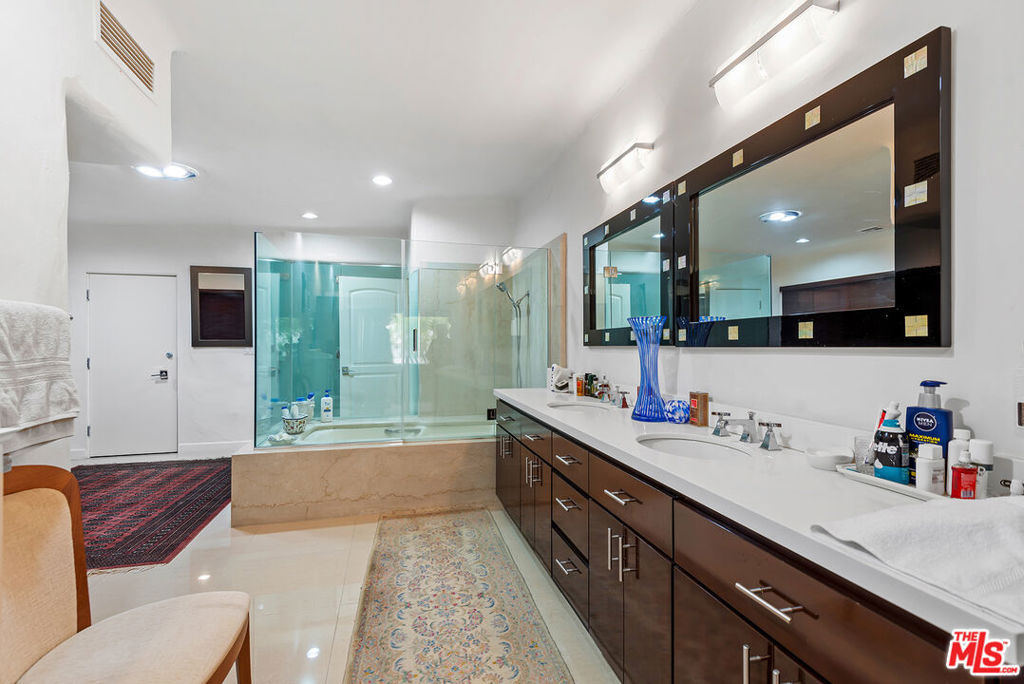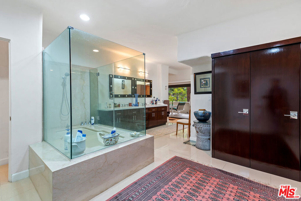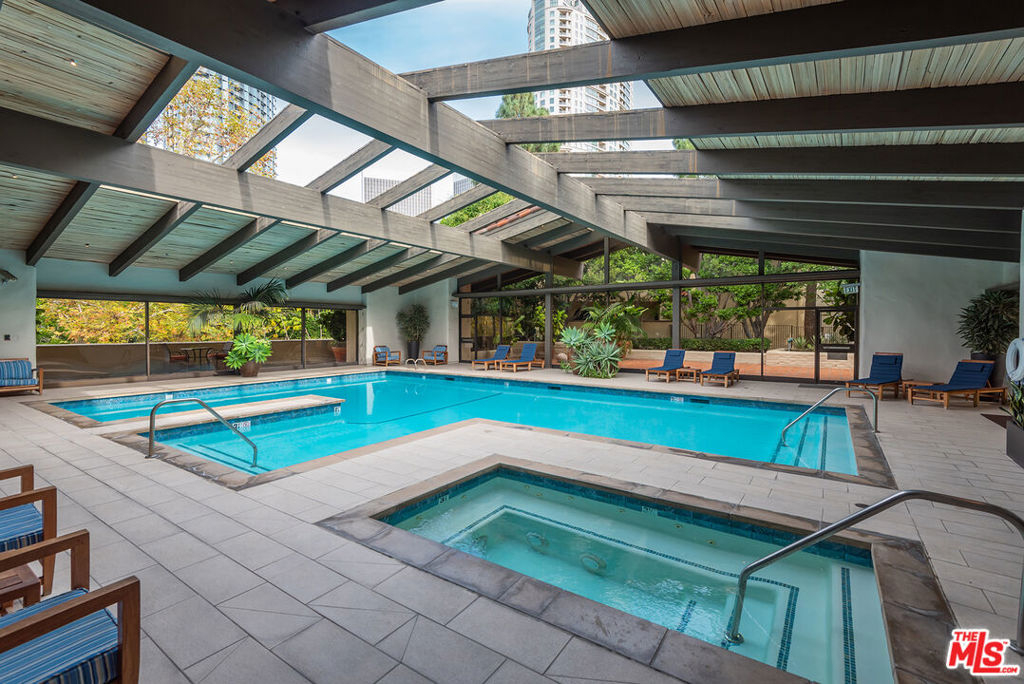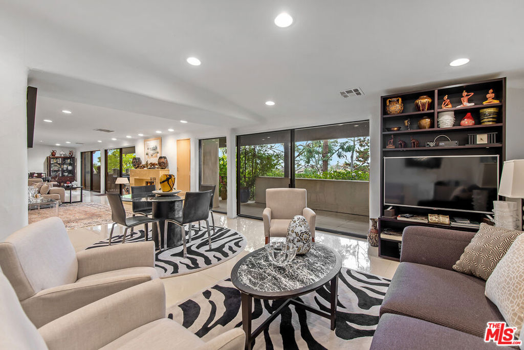 Exquisitely renovated stunning one-level 3 bedroom, 5.5 baths, 5,155 sf, rarely found in highly sought after Century Woods secret oasis behind guard-gates. Designed by Cliff May, this low rise building offers complete privacy and inspiring West facing views through beautiful trees. Finely appointed all new designer chef's kitchen, equipped with Viking ovens. With four expansive balconies, this lovely home is perfect for entertaining. Glamourous white marble entry welcomes the guests into spacious living room with library, bar and dining room. The primary suite includes office, two baths, fireplace, multiple closets, pristine maple flooring, and private terrace. Amenities include fitness center, interior and exterior pools and spas, sparkling flowing waterfall, recreation building with caterer's kitchen, NS tennis court. Close to Westfield Mall and all Century City has to offer.