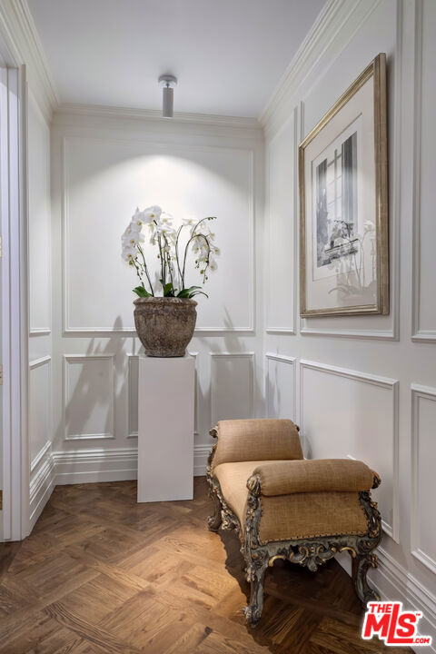 Stunning brand new classic designed pied-a-terre in Prestigious Le Parc in Century City. Designer done to perfection with all new systems in desirable interior location facing fountains & ponds. This exquisite re-designed & remodeled modern style 2 bedroom plus Den offers European oak flooring and brand new upgrades throughout. The elegant foyer announces your entry into the large living room with 10 foot ceilings and walls of French doors to lushly landscaped private patio. The main hallway with stunning coffered ceilings leads to dramatic Dining room also with fountain views. Chefs kitchen boasts new Wolf & Sub-zero appliances and marble countertops. Breakfast area opens to a private terrace with heated flooring. The primary suite opens to a gorgeous marble bath with separate tub and shower, custom walk in closet & heated flooring. Large guest bedroom with well appointed bath. Stunning powder room w/marble vanity. Extra storage closets. This sophisticated condo is like living in a private home, but w/ all of the amenities & security of world renowned Le Parc with acres of stunning grounds. 24 hour guard gated security, pools & spa, tennis courts, gym and a clubhouse. Close to all Century City & Beverly Hills has to offer!