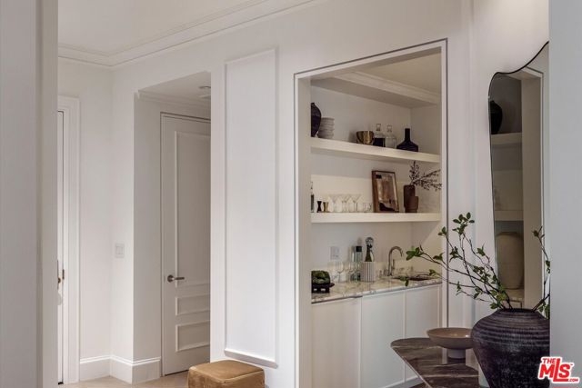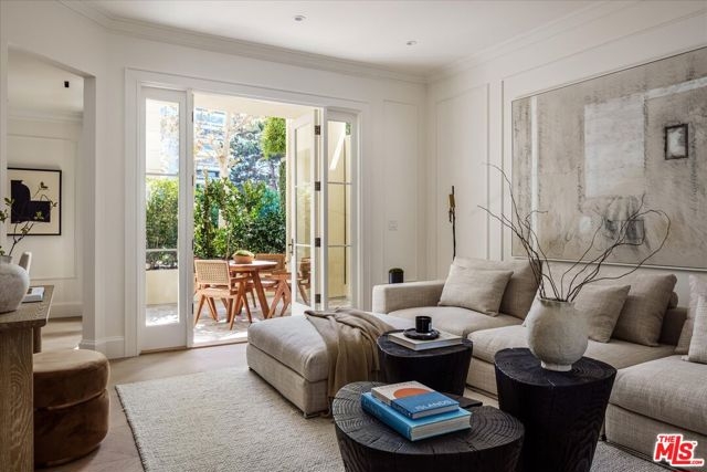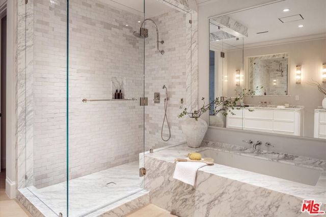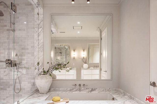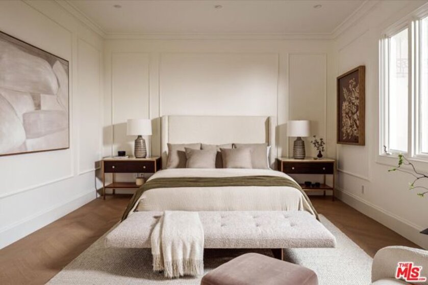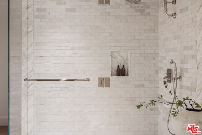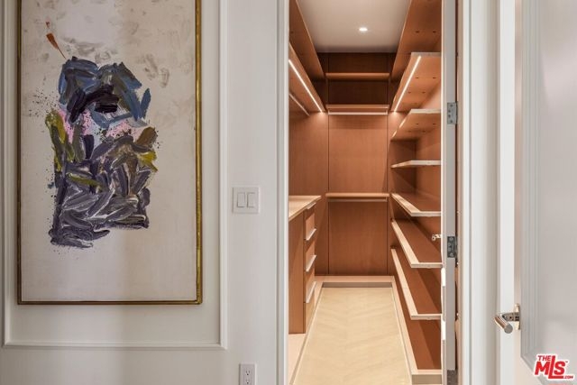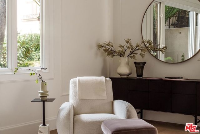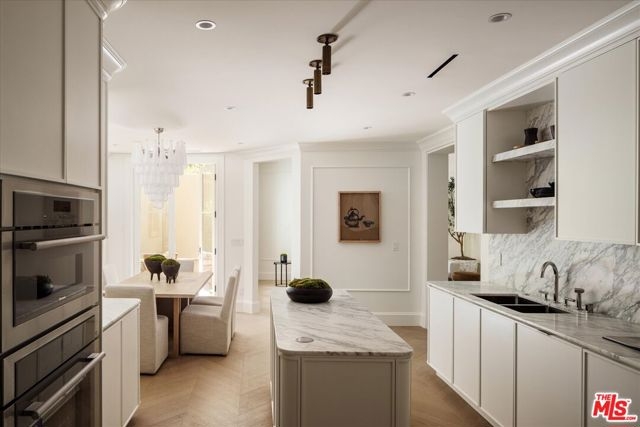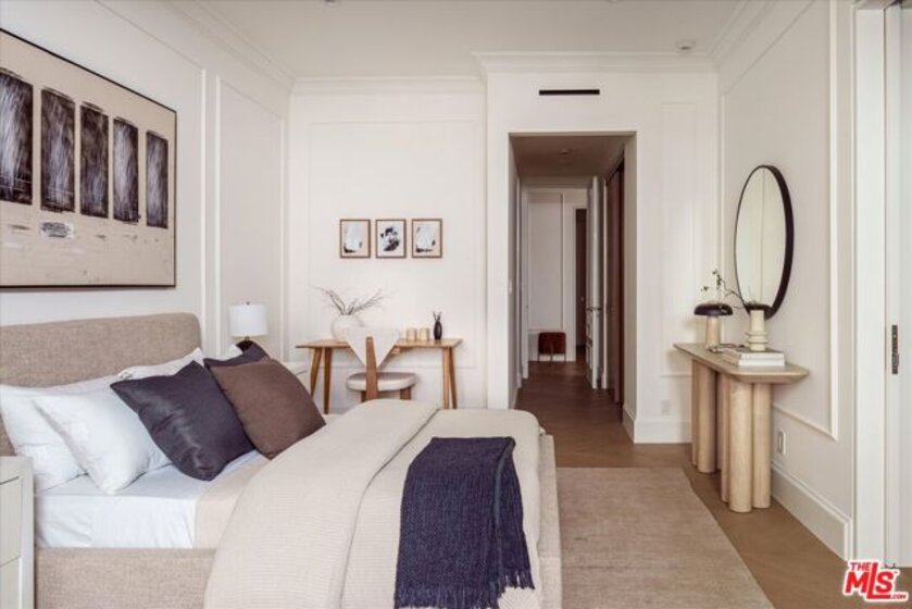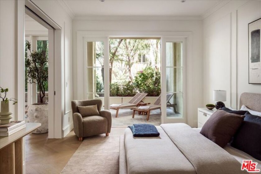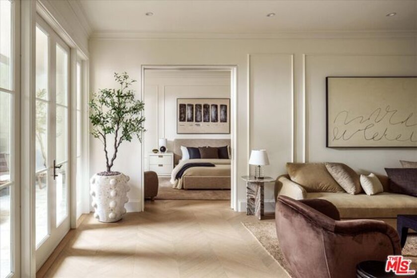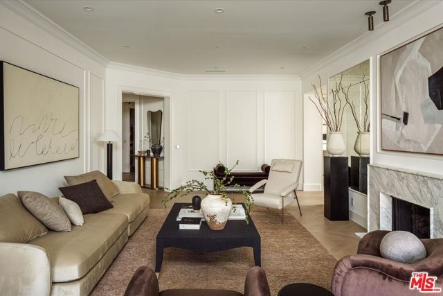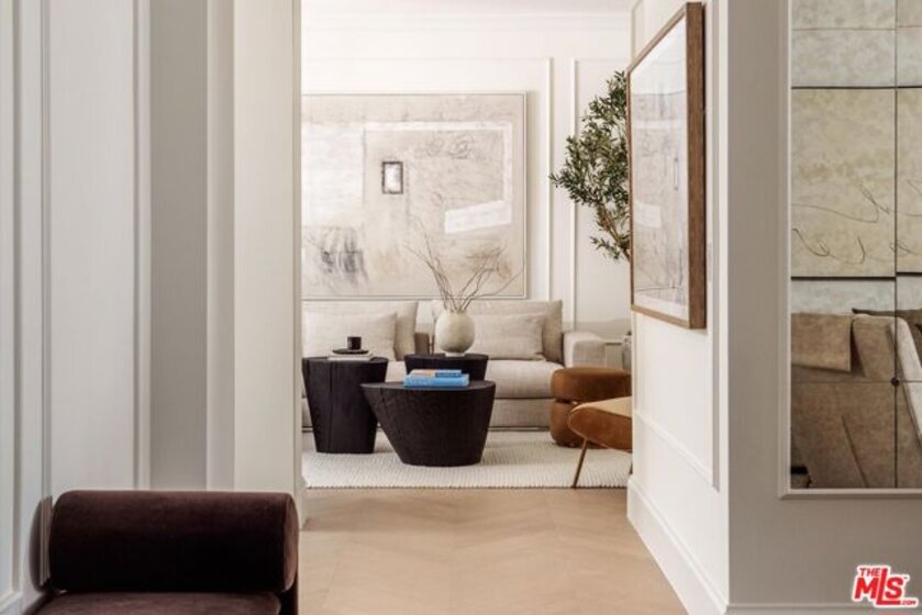 Exquisite Contemporary Elegance within the prestigious, guard-gated community of Le Parc in Century City, this reimagined interior located residence is a masterclass in timeless design, artisan craftsmanship, and curated luxury. Meticulously renovated with bespoke finishes and high-end materials sourced from around the globe, this residence exudes sophistication at every turn. The chef's kitchen is a stunning culinary showpiece, outfitted with fully paneled Thermador and Sub-Zero appliances, custom cabinetry, and spectacular imported Italian Calacatta marble counters and backsplashes. A custom plastered range hood, Waterworks polished nickel fixtures, and a dramatic Murano glass chandelier complete this remarkable space, designed as much for daily living as for elevated entertaining. The powder room is a design-forward jewel box, featuring unlacquered brass fixtures by Waterworks, Villeroy & Boch ceramics, a sculpted one-piece European marble sink, imported Murano sconces, Roman Clay walls and ceilings, and a solid Trustyle door crafted with custom carpentry. The secondary bathroom continues the luxury experience with polished nickel fixtures, hand-glazed tiles, Murano lighting, Calacatta marble, and a striking Star Sapphire shower enclosure. The serene primary bath offers spa-like indulgence with a Hydrosystems Lacey soaking tub, Waterworks polished nickel fixtures and accessories, Calacatta marble, imported Moroccan Zellige tiles, Waterworks sinks, Villeroy & Boch toilet, Star Sapphire shower glass, concealed bath fans, and designer sconces that cast a soft, ambient glow across its Roman Clay walls and ceilings. The primary bedroom is equally refined, showcasing a Murano glass chandelier, fully adjustable custom closets with integrated LED lighting, designer downlights, hand-finished white oak chevron flooring, and exquisite millwork. In the living room, a custom Italian Calacatta fireplace anchors the space, enhanced by antique mirrors, chevron-patterned white oak floors, sleek linear air registers, designer lighting, and seamless custom carpentry creating a warm yet sophisticated environment. Throughout the home thoughtful enhancements include 8-foot solid core doors by Trustyle, polished nickel hardware, brass-accented designer lighting, and hardwired high-speed internet connections. A comprehensive systems upgrade includes all-new HVAC with linear registers, reimagined electrical wiring with new switches and recessed LED lighting, enhanced plumbing with modern conservation and anti-scalding features, and a fully integrated low-voltage system with updated burglar and fire alarms. This bespoke Century City residence blends the comfort of a private home with the luxury and security of one of Los Angeles' most coveted full-service communities. Le Parc offers 24-hour guard-gated security, lush park-like grounds with walking paths, water features, pools and spa, a fitness center, and tennis courts all just moments from Beverly Hills and the world-class dining, retail, and entertainment of Westfield Century City.