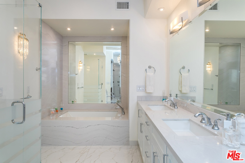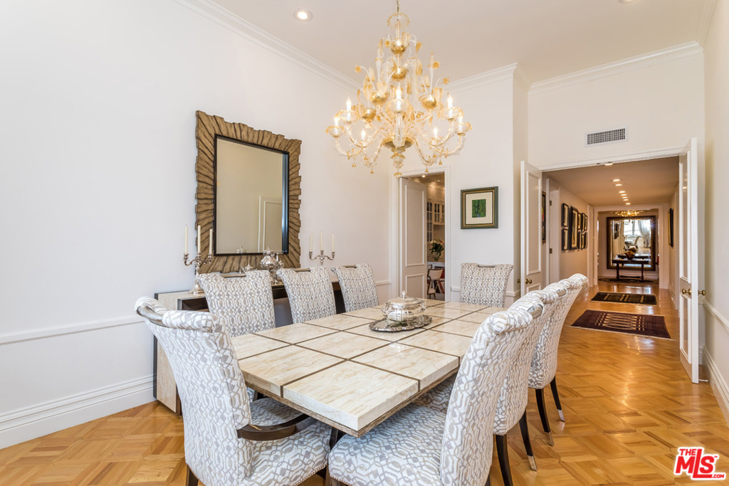 Spectacular penthouse unit in prestigious Le Parc Community in Century City. The unit was exquisitely remodeled, with no expenses spared. The grand living rm boasts hi-ceilings, dramatic floor to ceiling onyx fireplace, new parquet floors, lg windows, terraces & sep formal dining rm. Chef kitchen with Thermador fridge & stand-alone wine fridge. Miele appliances including Induction cook top, steam oven, dish warmer, expresso maker, convection oven, & microwave. Breakfast area features elegant custom-made cabinets & beautiful Cambria stone countertops. Spacious main suite featuring a very large custom walk-in closet. Main bath w/Cambria stone shower, bathtub. Custom built-in cabinets. Oversized guest bedroom w/ blt in bookshelves, pvt bathroom w/Cambria shower &counter. Den w/lg windows, custom blt Murphy bed, built in cabinets, easily converts to 3rd bedroom. Great views of city lights & courtyard. Close to Century City Westfield mall, theaters, restaurants and so much more. . Broker does not guarantee the accuracy of the information provided, including square footage. Buyer is advised to independently verify the accuracy of this information through personal inspection, building permits and/or with appropriate professionals(i.e. attorney, appraiser, architect, contractor, etc.). Adherence to any mandatory government showing requirements is also required.