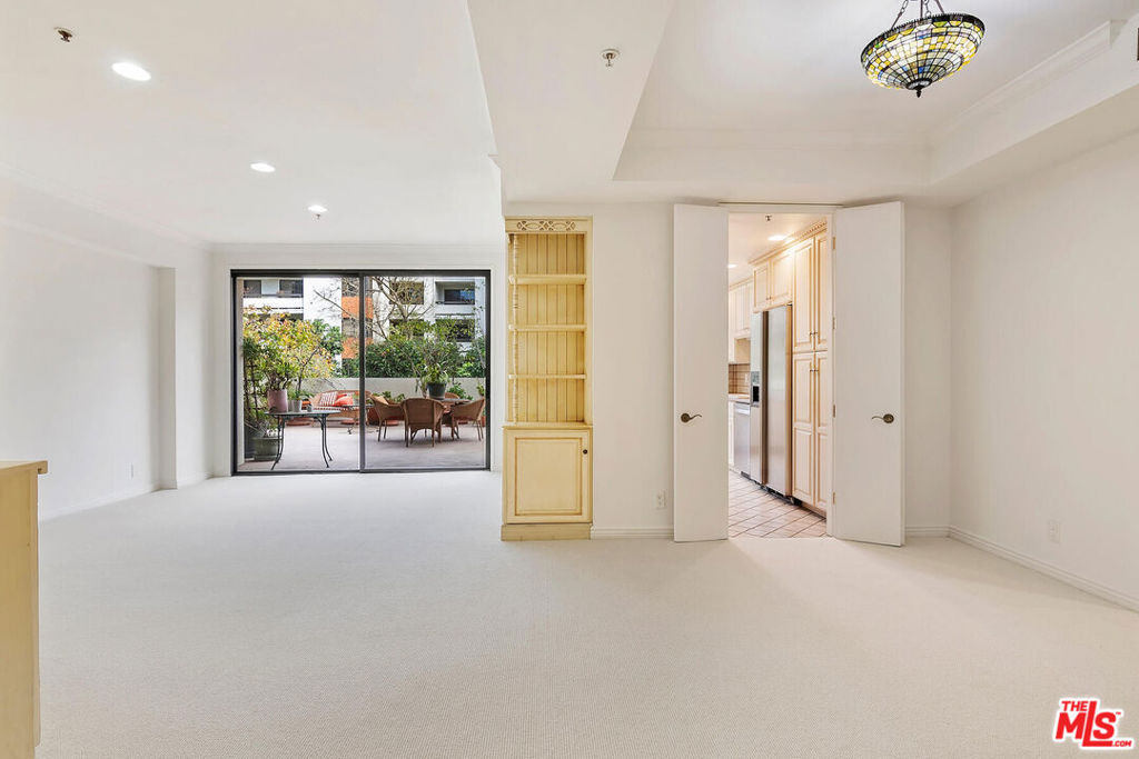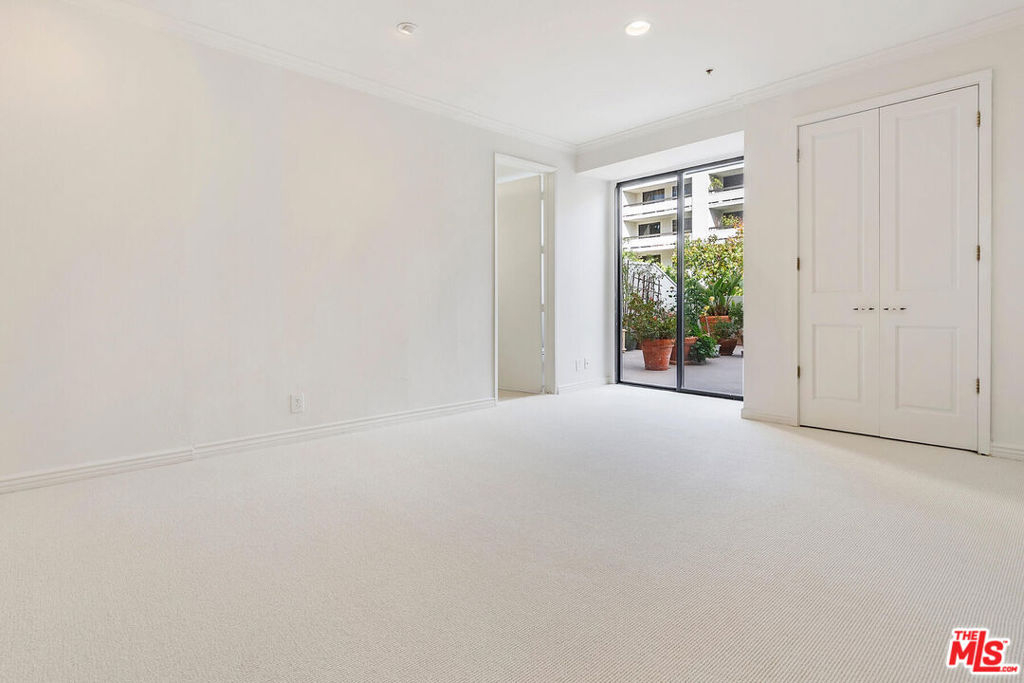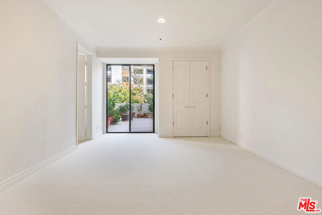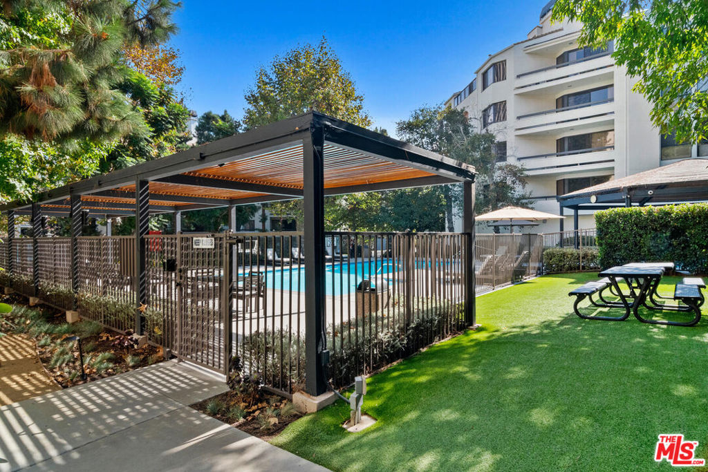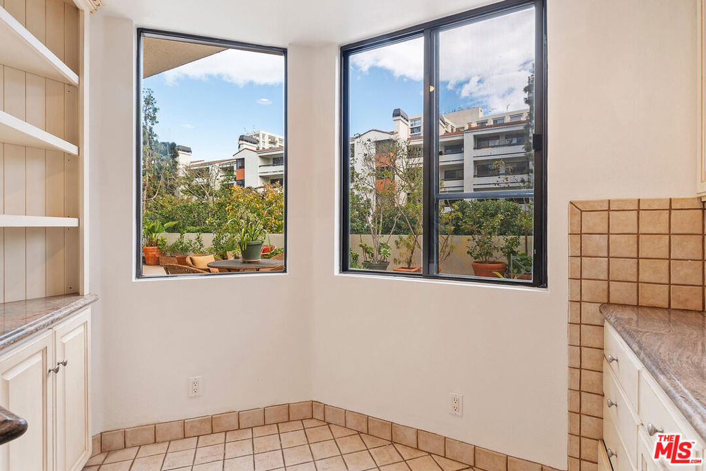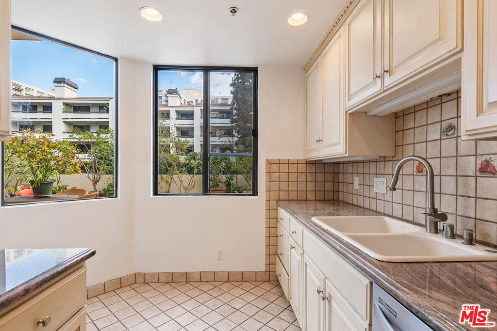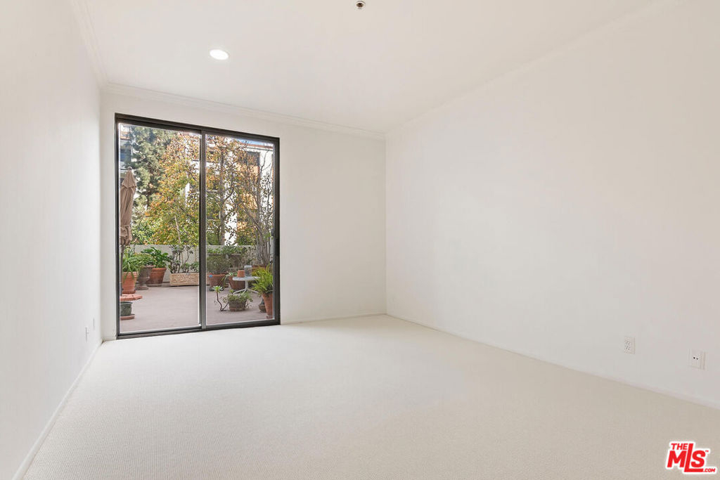 ***See Virtual 3D Tour for additional and interior photos*** Imagine waking up to your own rose garden! Rare opportunity to enjoy this coveted 2 bedroom 2 bath floor plan and astounding outdoor space. Living room and both bedrooms have direct access to the rare yard-like patio resulting in an indoor-outdoor feel that will surely bring a smile to your face. The eat-in kitchen has windows that overlook the patio as well, allowing for light and sense of openness. The bedrooms are well separated on either side of the unit. The floorplan has been reimagined to allow for a more streamlined flow and clever creation of an office. There is laundry in the unit. The location within the complex couldn't be better. The unit sits up above the lobby level and faces the lane. Side by side parking with 2 generous storage bins above. All behind the gates of Century Park Place, resort style complex with 3 pools, 3 tennis courts, basketball & pickleball courts, dog walks, club room, on site office with friendly efficient staff, plenty of guest parking, fitness room in each building with sauna & rest rooms. Convenient to world class shopping, restaurants and entertainment. HOA offers 24/7 security, EQ insurance, DirecTv, Internet & professional mgmt.