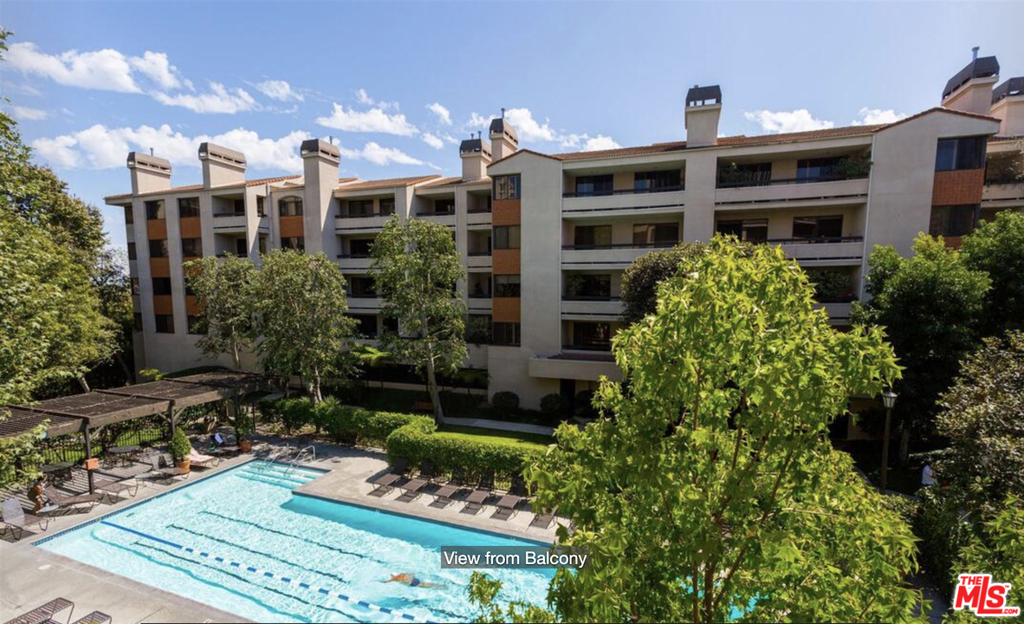 Gorgeous southern light all year long from this interior quiet treetop view unit. Spacious( 1580 sq ft) 2+ 2 with terraces overlooking the only pool in the complex heated all year long. Spacious, eat-in kitchen, sub-zero refrigerator, new cook top and recessed lighting, surrounded with glass block wall for natural light. Shutters throughout the unit. Great master suite with fireplace and good closet space. Full recreational amenities including 3 pools, 4 tennis courts, Clubhouse and fitness room in every building. on-site property management. Located in the heart of Century City. Close to theaters, shops and restaurants. Photos in MLS are taken when unit. was purchased. Unit is owner occupied.