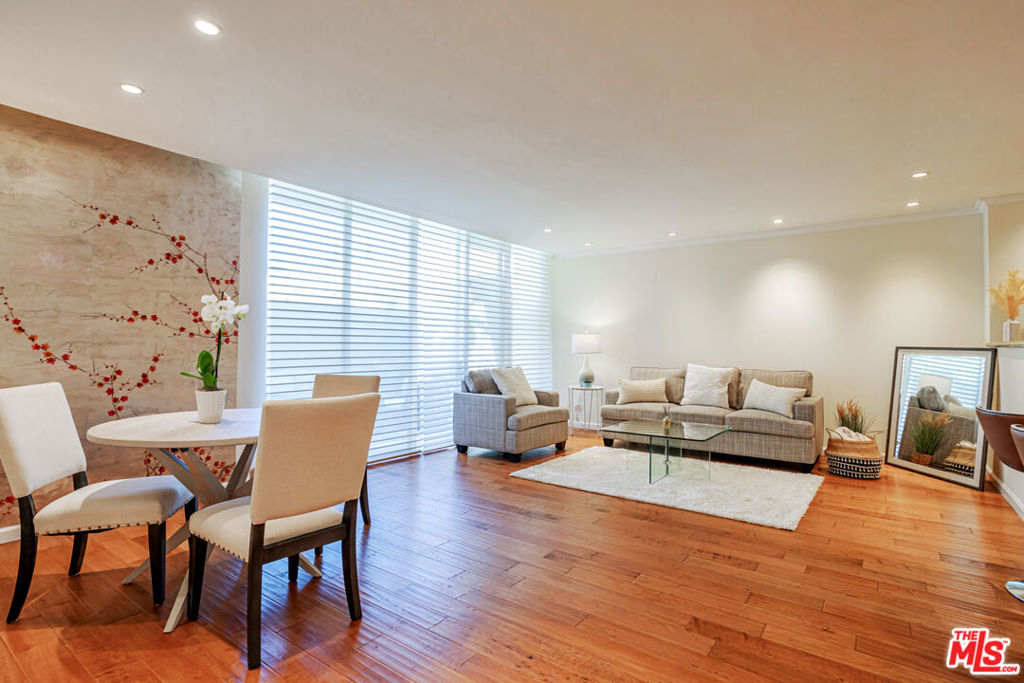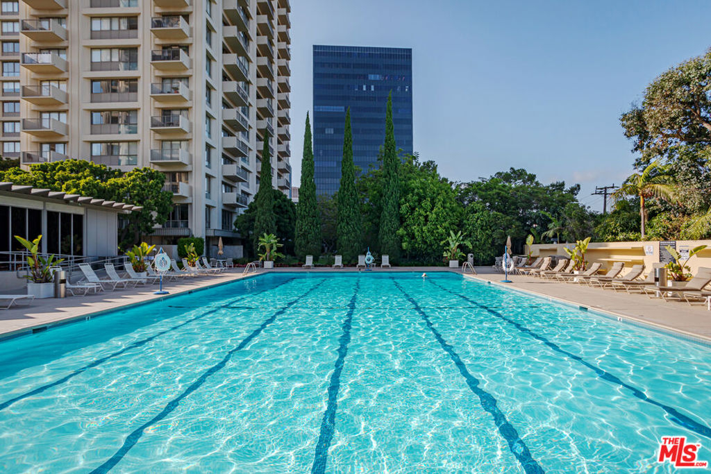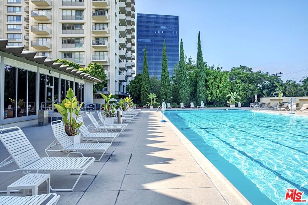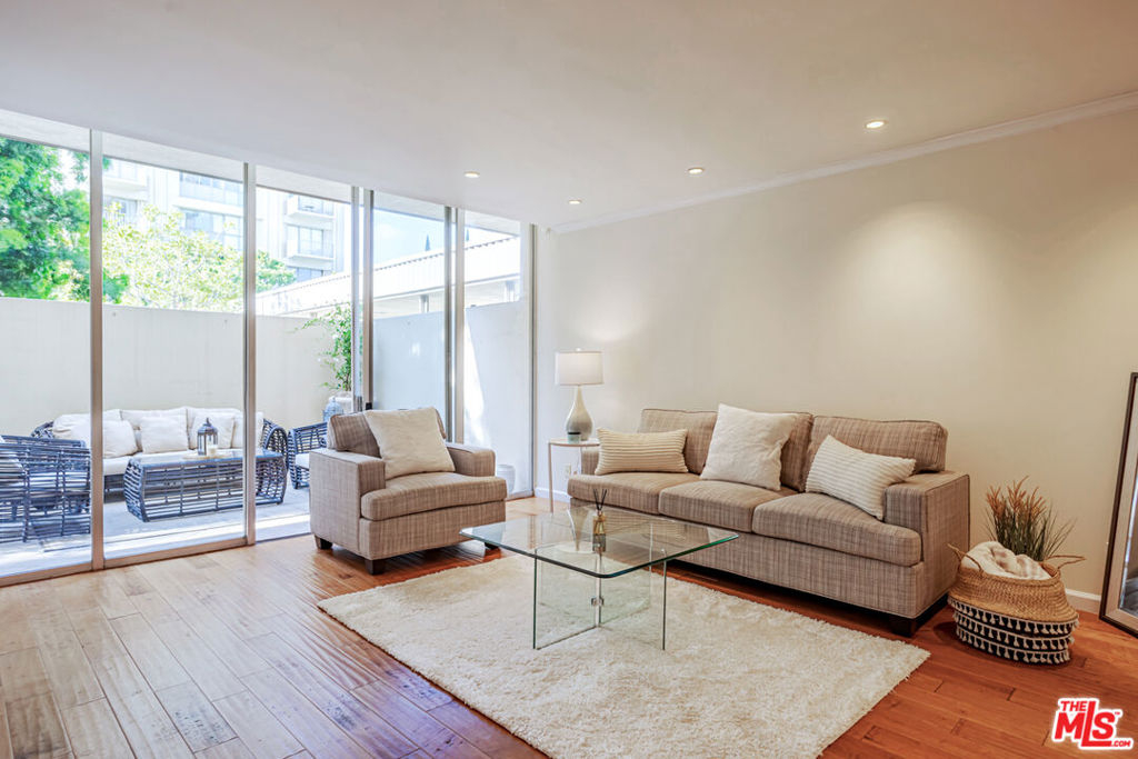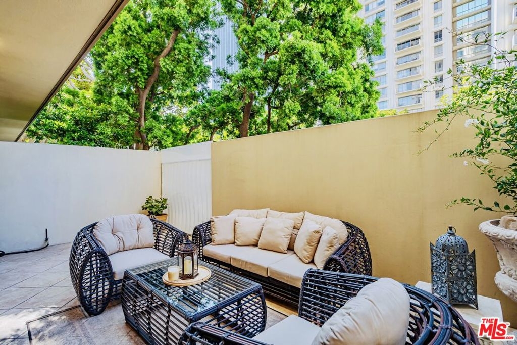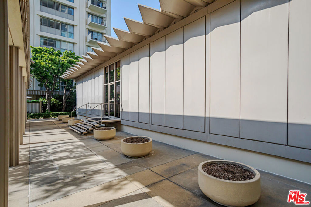 Enjoy the modern elegance and ease of living in this unique one bedroom at the sought after Century Park East building. This rare achitectural gem built by Charles Luckman in 1966 has a cool mid-century contemporary feel. Bright open floorplan is light filled by an incredible 250 sq ft privately walled patio with unlimited possibilites! Floor to ceiling glass windows are covered by beautiful custom motorized blinds. Other luxury upgrades include real hardwood plank floors throughout, recessed lighting, crown molding and new paint. Kitchen boasts plentiful custom cabintery, undercounter lighting and Thermador appliances including stainless steel microwave, dishwasher, stove and refrigerator. Enourmous bedroom has room for any size bed set and has floor to ceiling windows with crisp white plantation shutters. Hallway off of bedroom has large walk in closet with adjustable shelving and built ins. Additional linen closet in hall. Good sized bathroom has grey slate tile finishes, electronic self cleaning toilet, jetted tub and separate shower. Enjoy resort amenities, including 24 hour valet parking, houseman, security staff, concierge, fantastic management, olympic size swimming pool with towel service, saunas, state of the art fitness center, tennis courts, dog park with monthly dog parties, acres of flowers and grassy landscaped grounds. HOA dues include water, hot water, sewer and trash. Unit comes with dedicated storage, asssigned parking space and valet parking for both owners and guests. Prime location minutes from Century City Mall, Westwood/UCLA, Santa Monica and Beverly Hills.