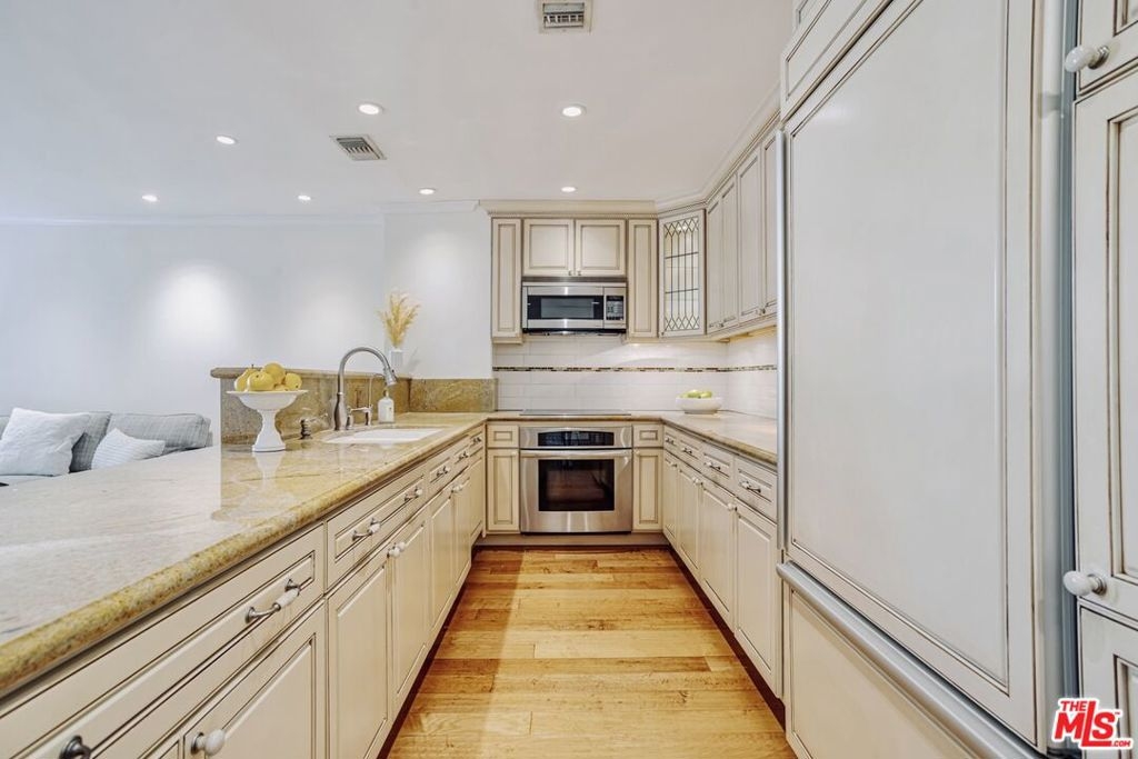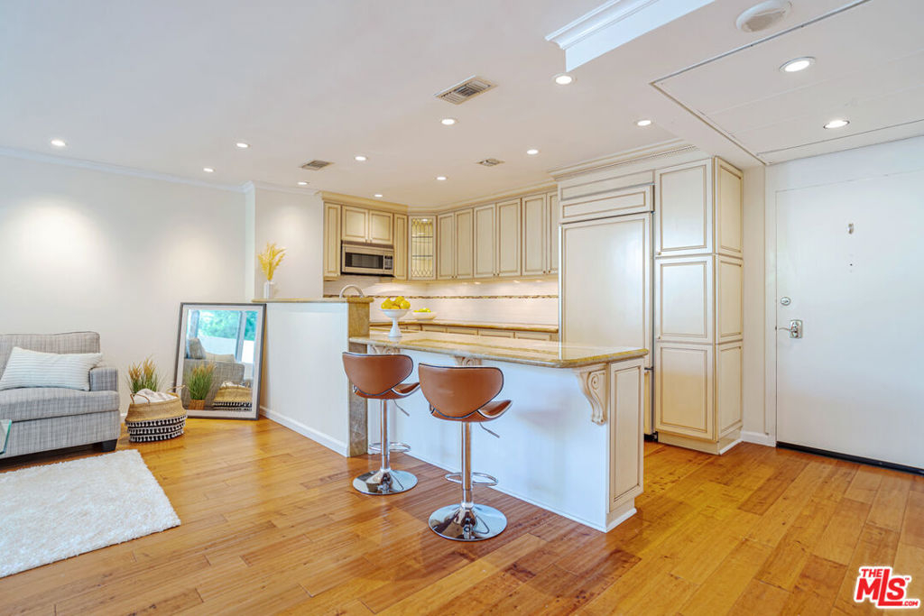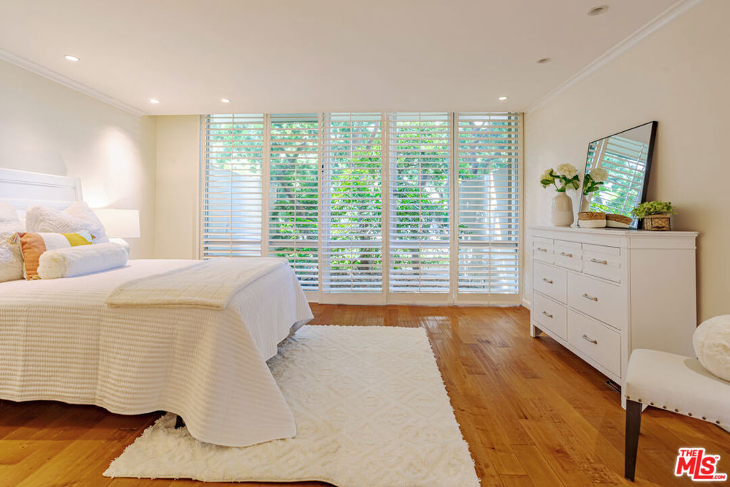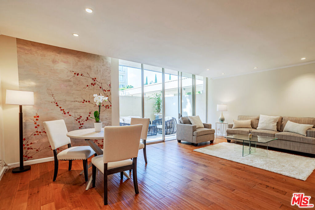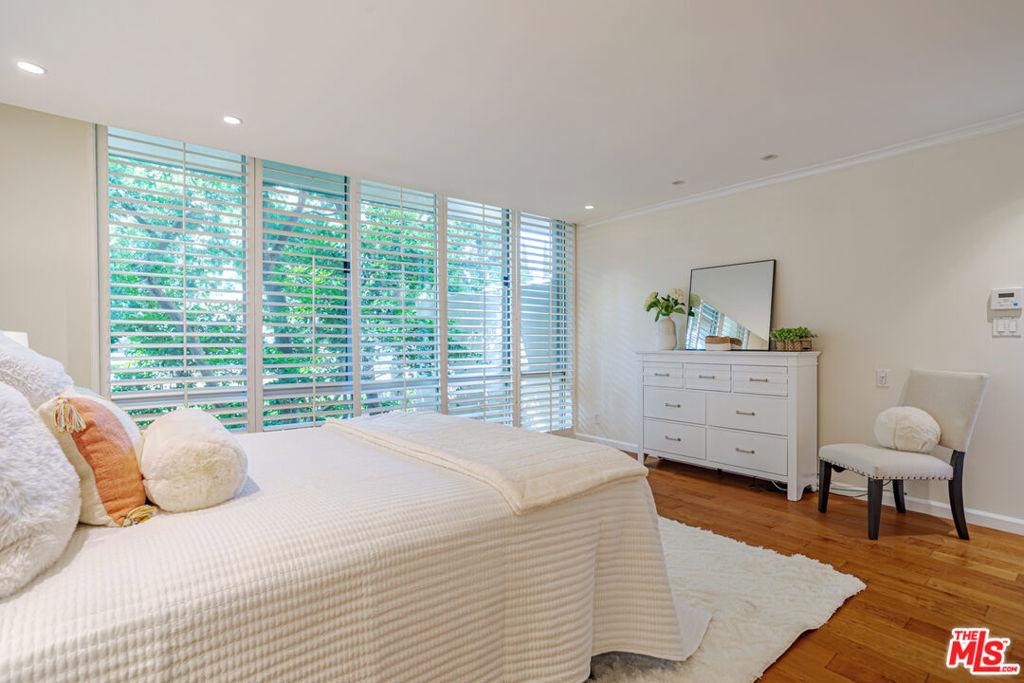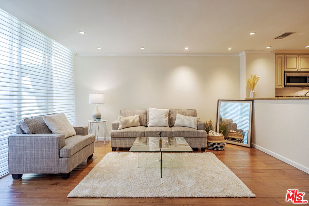 Enjoy the modern elegance and ease of living in this unique one bedroom at the sought after Century Park East building. This rare achitectural gem built by Charles Luckman in 1966 has a cool mid-century contemporary feel. Bright open floorplan is light filled by an incredible 250 sq ft privately walled patio with unlimited possibilites! Floor to ceiling glass windows are covered by beautiful custom motorized blinds. Other luxury upgrades include real hardwood plank floors throughout, recessed lighting, crown molding and new paint. Kitchen boasts plentiful custom cabintery, undercounter lighting and Thermador appliances including stainless steel microwave, dishwasher, stove and refrigerator. Enourmous bedroom has room for any size bed set and has floor to ceiling windows with crisp white plantation shutters. Hallway off of bedroom has large walk in closet with adjustable shelving and built ins. Additional linen closet in hall. Good sized bathroom has grey slate tile finishes, electronic self cleaning toilet, jetted tub and separate shower. Enjoy resort amenities, including 24 hour valet parking, houseman, security staff, concierge, fantastic management, olympic size swimming pool with towel service, saunas, state of the art fitness center, tennis courts, dog park with monthly dog parties, acres of flowers and grassy landscaped grounds. HOA dues include water, hot water, sewer and trash. Unit comes with dedicated storage, asssigned parking space and valet parking for both owners and guests. Prime location minutes from Century City Mall, Westwood/UCLA, Santa Monica and Beverly Hills.
