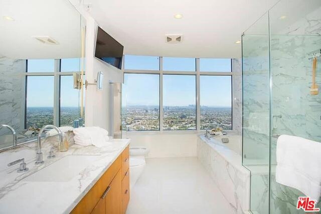 Designer done architectural masterpiece at The Century. Stunning jetliner views from Downtown LA all the way to the ocean. Keyed elevator entry directly into private foyer. Incredible open floor plan with state of the art kitchen ideal for entertaining. Master bedroom is the ultimate sanctuary with dual baths as well as dual custom-made closets. Modern yet warm finishes throughout. Light filled rooms with interior designer touches. Designed by Robert A.M. Stern, The Century is a LEED Silver, 5-Star structural icon on over 4 acres of meticulously manicured grounds inspired by legendary Beverly Hills and Bel Air estates. Amenities include a 75' pool, fitness center, spa treatment room, children's playroom, business center, screening room and wine storage. With 24-hour security, valet and concierge services you can leave the worries of a house behind and enjoy high rise living at its finest. Custom motorized shades, TV's and all AV equipment included in sale.