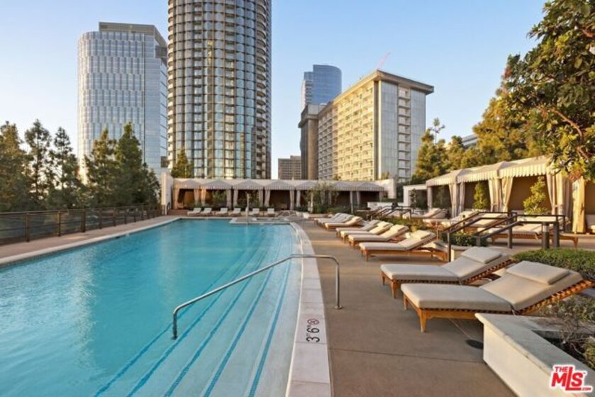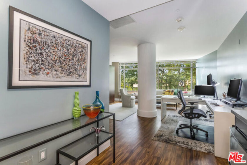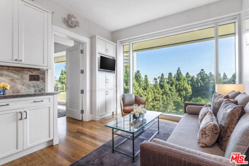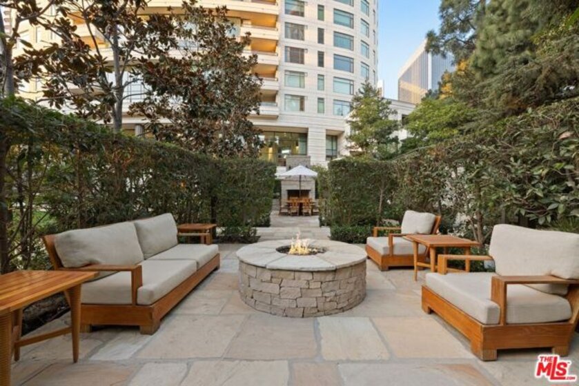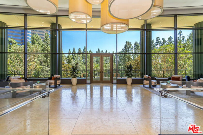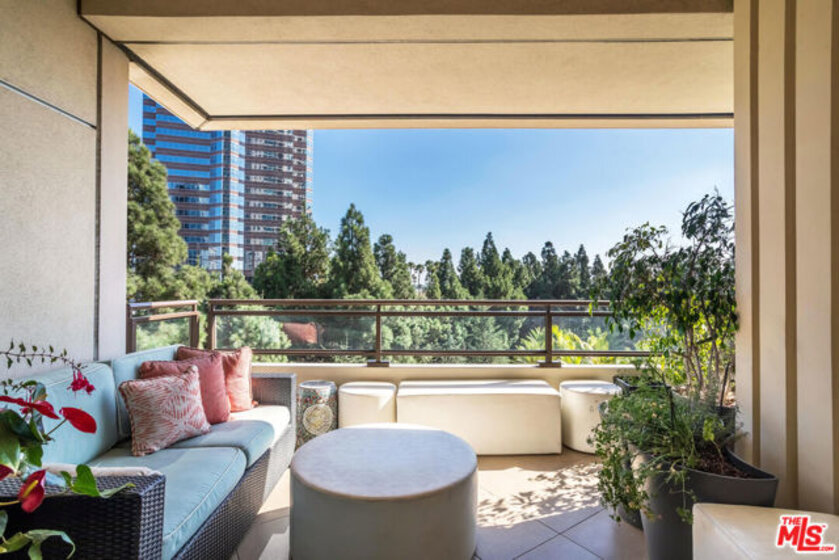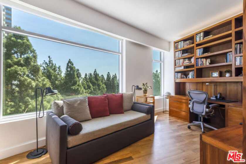 Extraordinary opportunity to own one of The Century's most sought-after residences. Beautifully appointed and one of only eight homes showcasing this premier 3,440 sq ft floor plan, 4B combines exceptional space with effortless flow for grand entertaining and comfortable everyday living. A secure, direct access elevator opens into a private foyer with impressive double-door entry. Inside, high ceilings and large windows provide unobstructed green vistas. The expansive living room features a fireplace and opens to a spacious terrace overlooking the gardens, while the formal dining room, easily accommodating 16+ guests, connects to a stylish, newly remodeled kitchen with striking quartz counters, top-tier appliances, breakfast bar, abundant storage and an adjoining den. The luxurious primary suite includes a private terrace, custom cabinetry, three closets, and a light-filled bath retreat. The second bedroom features custom built-in bookshelves with desks and an updated bath. Additional highlights include a service hallway with a concierge closet, private walk-in storage room at parking level, and an assigned wine locker. This residence can also be acquired at an additional cost, with the exclusive-use right to office #5, a 650 sf suite located on the garden level. Available only to owners at The Century, this office suite features a full bath, Murphy bed and is one of only seven units in the building- a rare luxury for those desiring a dedicated workspace or retreat without ever leaving home. Set on almost four acres of beautifully landscaped grounds, The Century represents the pinnacle of Los Angeles luxury living with world-class amenities: a 75-foot resort-style pool and spa, state-of-the-art fitness center with treatment rooms, private screening room, wine cellar, children's playroom, outdoor dining areas with fireplaces, BBQs, firepits and lounges, walking paths, water features, and even a fenced dog park. Residents enjoy white-glove service including 24/7 concierge, security, lobby attendant services and valet parking - all within an atmosphere of unmatched privacy and prestige.
