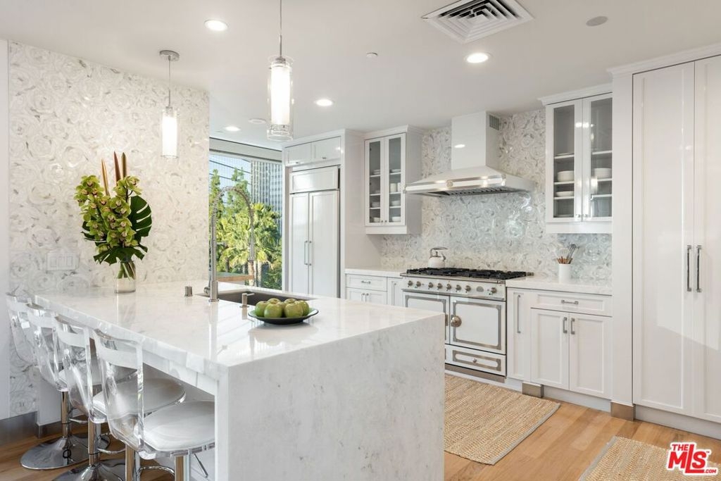 Residents of the Century will be pampered by an unparalleled array of amenities and services that rival the world's finest hotels. Experience luxury living with a private elevator providing direct access to your unit. This designer unit features a desirable floor plan where bedrooms are thoughtfully positioned without shared walls. Impeccably crafted with upscale touches, the kitchen offers a La Cornue range and opulent Italian Carrara marble complemented by a stunning mother-of-pearl backsplash. Step onto the expansive outdoor balcony offering breathtaking views of the city skyline, mountains, and Pacific Ocean.