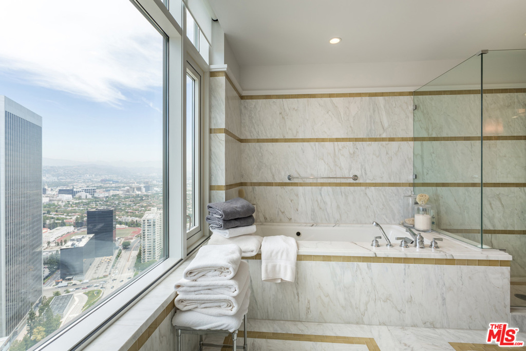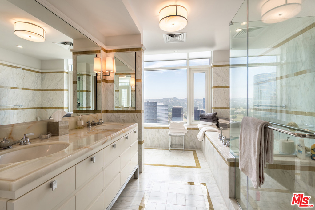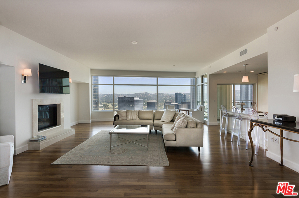 NO common hallways! DEAL OF THE CENTURY! Reduced Price. Interested in leasing, instead? Lease option is possible, too. Perfect move-in condition. Specially priced for such a high floor. Light & bright, perched on the 34th flr w/breathtaking views! 1 Century Drives' reputation speaks for itself. Gorgeous views of city lights, sunsets, greenery of L.A. Country Club & Hollywood sign. 24 hr. guard & valet parking. Concierge for your every need & doormen to greet you. Elevator doors open to your own large PRIVATE entrance. Enter great room w/frplc, huge windows w/ fabulous views, hrdwd floors, balcony, & kitchen w/all amenities expected. 2 Bdrms/3 marble Baths, see Floorplan & Matterport tour. Enjoy private gated property w/lush lawns, walk trails & dog park. Private sections w/BBQs & tables. Pool w/cabanas. Beautifully landscaped, Fitness Center, Spa treatment rms, yoga rms, library, screening room, wine cellar & more. Enjoy the grand lifestyle of 1 Century, Classic Luxury, "Of Course".