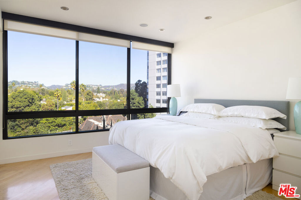 Positioned in the desirable northwest corner of The Diplomat, this elegant residence is framed by walls of glass that fill each room with natural light and capture sweeping views of the city skyline, ocean, and mountains with clear-day ocean views and mountain vistas from the north-facing windows.The layout includes a welcoming living area with a fireplace, a dining space, and a covered terrace ideal for relaxation and entertaining. The updated kitchen features quality appliances, excellent storage, and a convenient bar area with a wine cooler. Both bedrooms are spacious and feature hardwood floors. The primary suite includes a large walk-in closet and an updated bath. The second bedroom also includes an en-suite bath, offering comfort and privacy for guests or an ideal office setup.Additional highlights include marble floors in the main living areas, a powder room, and a dedicated laundry room with washer and dryer.The Diplomat is a prestigious full-service building on the Wilshire Corridor offering two parking spaces, 24-hour doorman and valet service, pool, spa, saunas, fitness center, and additional storage. A refined home combining comfort, privacy, and views in one of Los Angeles's most desirable high-rise communities.