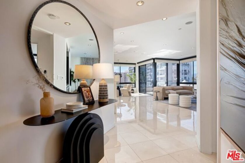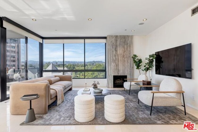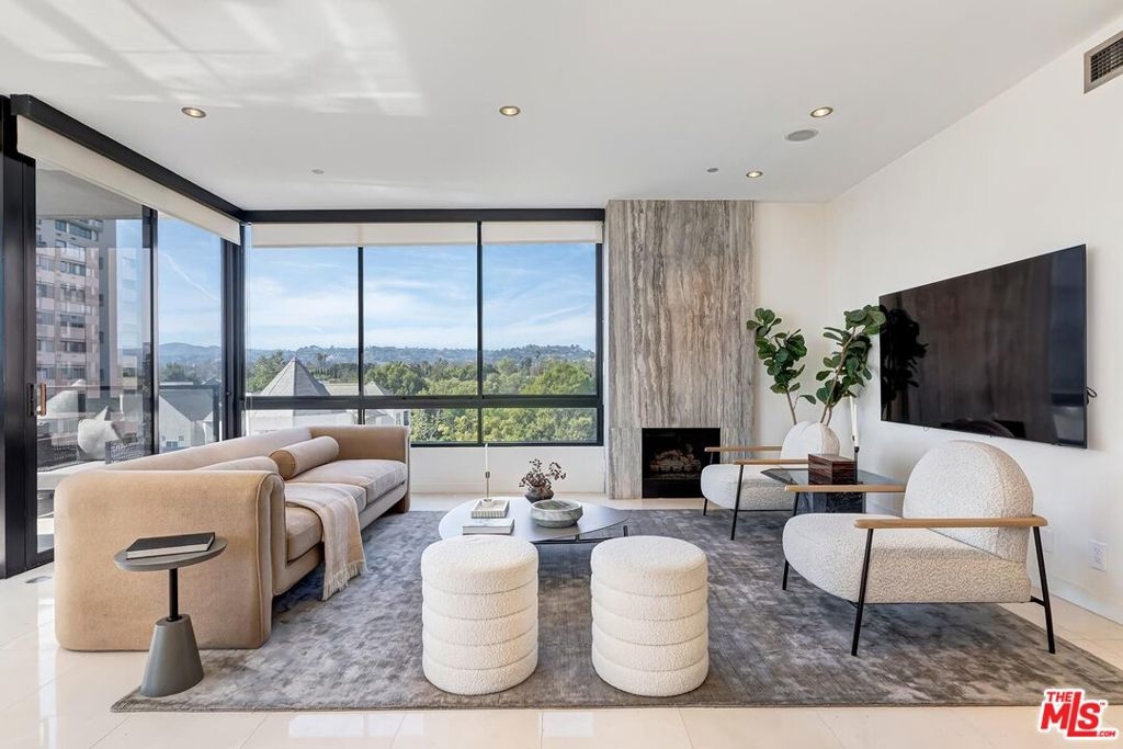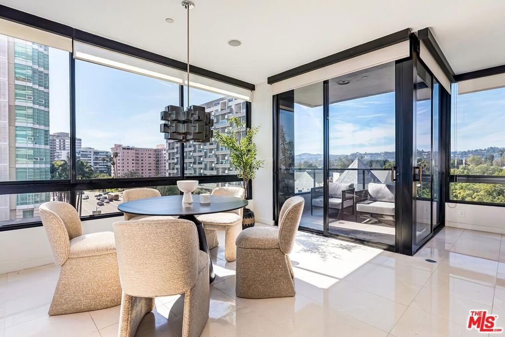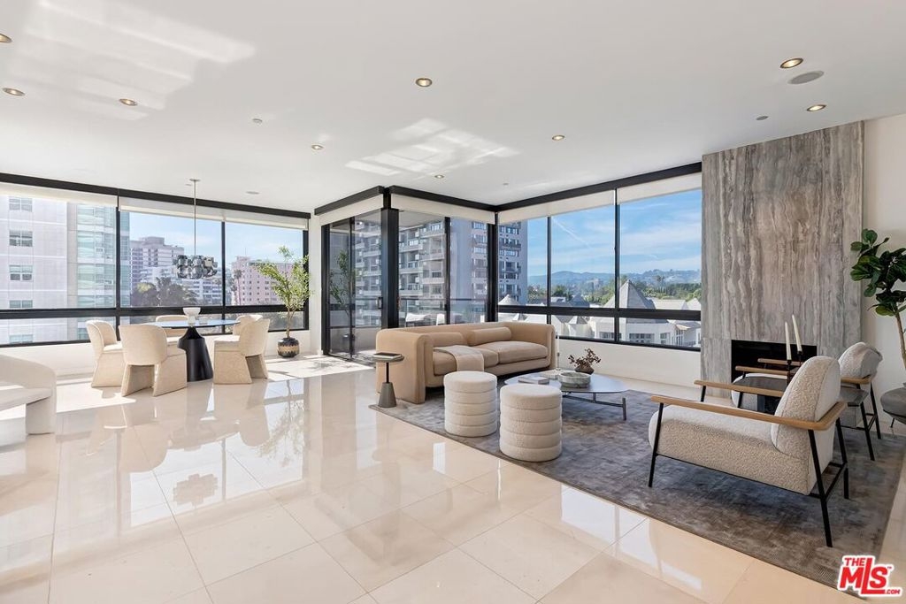 Positioned in the desirable northwest corner of The Diplomat, this elegant residence is framed by walls of glass that fill each room with natural light and capture sweeping views of the city skyline, ocean, and mountains with clear-day ocean views and mountain vistas from the north-facing windows.The layout includes a welcoming living area with a fireplace, a dining space, and a covered terrace ideal for relaxation and entertaining. The updated kitchen features quality appliances, excellent storage, and a convenient bar area with a wine cooler. Both bedrooms are spacious and feature hardwood floors. The primary suite includes a large walk-in closet and an updated bath. The second bedroom also includes an en-suite bath, offering comfort and privacy for guests or an ideal office setup.Additional highlights include marble floors in the main living areas, a powder room, and a dedicated laundry room with washer and dryer.The Diplomat is a prestigious full-service building on the Wilshire Corridor offering two parking spaces, 24-hour doorman and valet service, pool, spa, saunas, fitness center, and additional storage. A refined home combining comfort, privacy, and views in one of Los Angeles's most desirable high-rise communities.