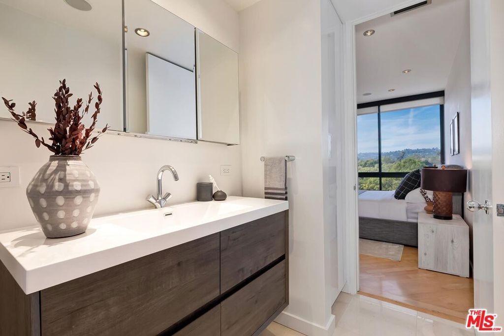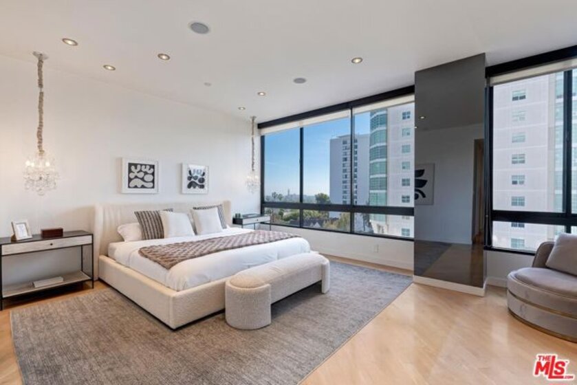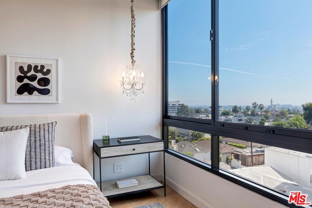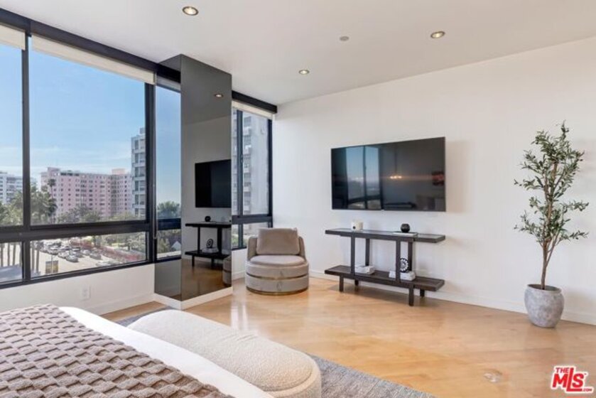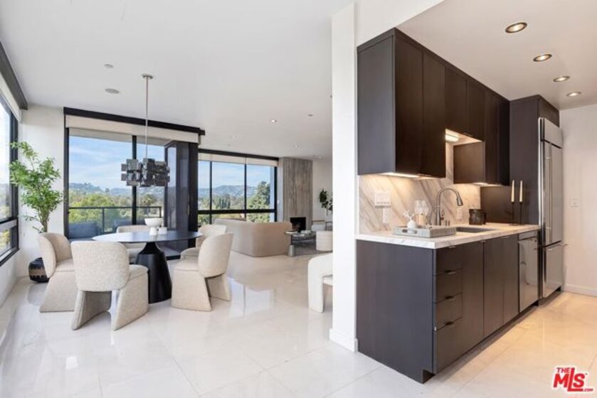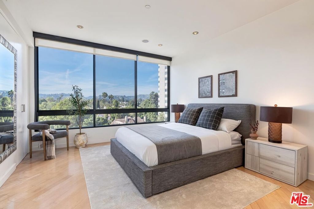Positioned in the desirable northwest corner of The Diplomat, this elegant residence is framed by walls of glass that fill each room with natural light and capture sweeping views of the city skyline, ocean, and mountains with clear-day ocean views and mountain vistas from the north-facing windows.The layout includes a welcoming living area with a fireplace, a dining space, and a covered terrace ideal for relaxation and entertaining. The updated kitchen features quality appliances, excellent storage, and a convenient bar area with a wine cooler. Both bedrooms are spacious and feature hardwood floors. The primary suite includes a large walk-in closet and an updated bath. The second bedroom also includes an en-suite bath, offering comfort and privacy for guests or an ideal office setup.Additional highlights include marble floors in the main living areas, a powder room, and a dedicated laundry room with washer and dryer.The Diplomat is a prestigious full-service building on the Wilshire Corridor offering two parking spaces, 24-hour doorman and valet service, pool, spa, saunas, fitness center, and additional storage. A refined home combining comfort, privacy, and views in one of Los Angeles's most desirable high-rise communities.
