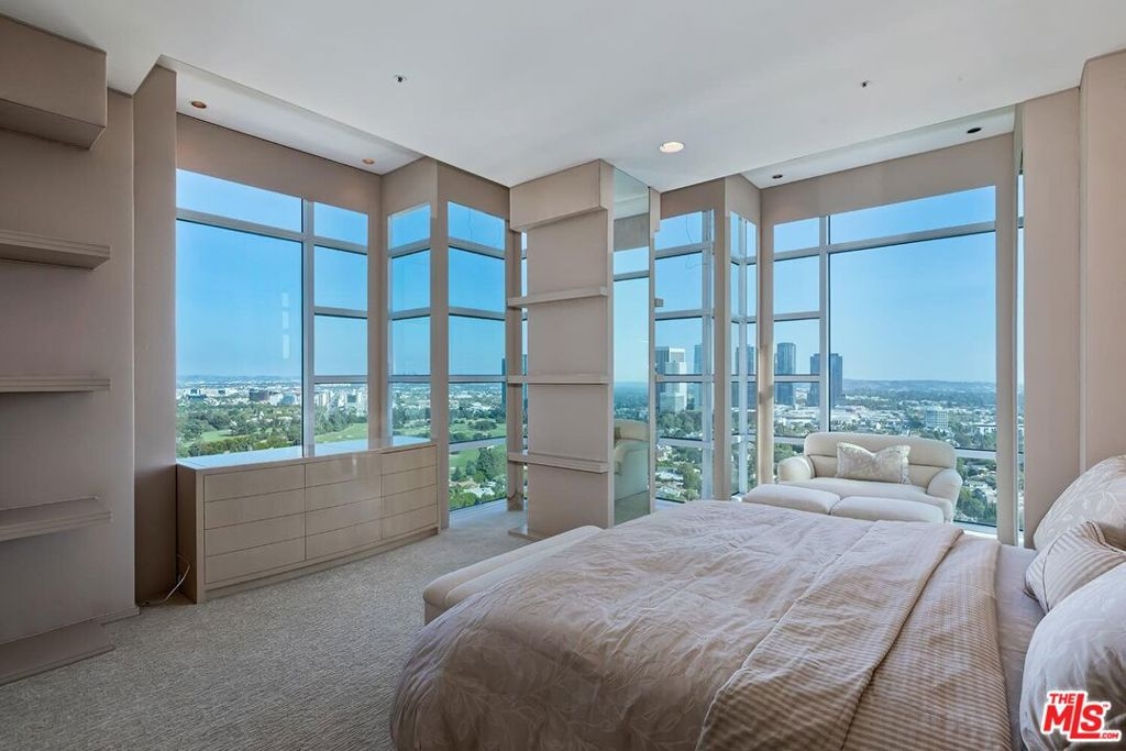 Welcome to La Tour #1703 --- an elegant home with sweeping southern, eastern, and western views. With sunrises over Century City and sunsets over the ocean, this 3,143 sq ft residence feels like a crown jewel above Los Angeles. As you enter, you're greeted by a light-filled, open-concept room that's equally suited to lavish entertaining and daily everyday living. Floor-to-ceiling windows draw your eye straight out to the skyline, while two private balconies extend your living space outdoors. The great room features a living area oriented to the view, a large dining space, and a comfortable family/TV area for more relaxed moments. The private wing of the residence has two full en-suite bedrooms, each designed for comfort and separation. The third bedroom has been thoughtfully reimagined as an office, ideal for working from home. The spacious kitchen offers granite countertops, generous custom cabinetry, and an everyday dining nook. A dedicated laundry room with side-by-side washer and dryer, central air and heat, plentiful closets, and an additional storage space make high-rise living feel practical as well as refined. La Tour is one of the Wilshire Corridor's most luxurious full-service buildings, prized for its privacy and attentive staff. With only four residences per floor, it offers the feel of a boutique building with the benefits of a premier high-rise. Residents enjoy 24-hour security, doorman, and valet parking, a welcoming lobby with full-time concierge, a modern fitness center, heated pool and spa, and recently refreshed outdoor areas and recreation room. Perfectly positioned on the Wilshire Corridor, La Tour places you moments from Century City, Beverly Hills, Westwood, UCLA, and an array of dining, shopping, and cultural destinations. Experience a rare combination of expansive space, stunning views, and full-service ease --- a sophisticated home in the sky.