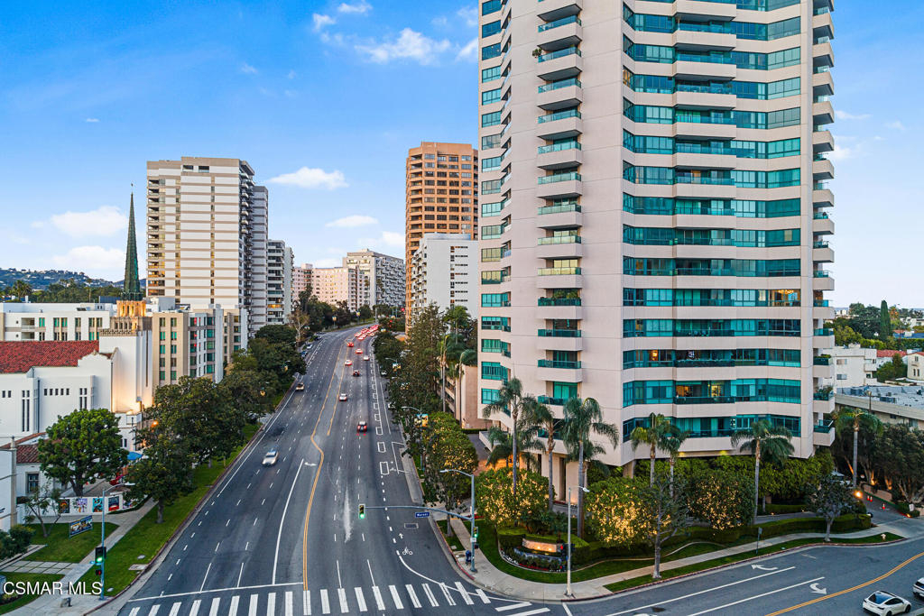 Perched high above the Wilshire Corridor on the 25th floor of the iconic Blair House, this extraordinary residence captures the essence of elevated West Los Angeles living. Sweeping, unobstructed views unfold from every room, offering a remarkable vantage point that spans from the Downtown skyline and Century City to the rolling hills of Bel-Air and the Pacific beyond.With only three other residences on the floor and more than 3,500 square feet of expansive single-level interiors, the home offers a rare combination of scale, privacy, and exclusivity. Walls of floor-to-ceiling glass define the open-concept great room, filling the space with natural light and framing the city's ever-changing backdrop. Three oversized private balconies extend the living areas outdoors, creating seamless indoor-outdoor flow and unparalleled front-row views of Los Angeles' most iconic landmarks.The primary suite is a refined retreat, positioned to take full advantage of the panoramic vistas and designed with a spa-inspired bath that evokes a sense of calm and understated luxury. Two additional ensuite bedrooms each enjoy their own striking outlook, providing comfort and privacy for guests or family. A spacious powder room, separate laundry room, service entrance, private storage, and curated finishes throughout further enhance the home's sophistication and livability.Residents of Blair House enjoy premier, full-service amenities including 24-hour valet and security, a salt water pool and spa, tennis court, newly renovated fitness center, and recreation room. The building's attentive staff delivers an unparalleled level of service and discretion synonymous with one of the Corridor's most established and prestigious addresses.An exceptional offering in one of West Los Angeles' most sought-after full-service buildings.