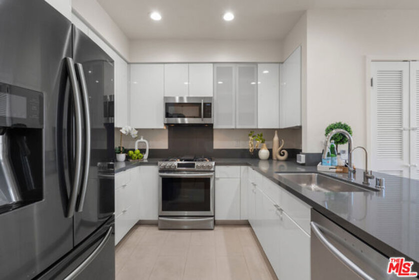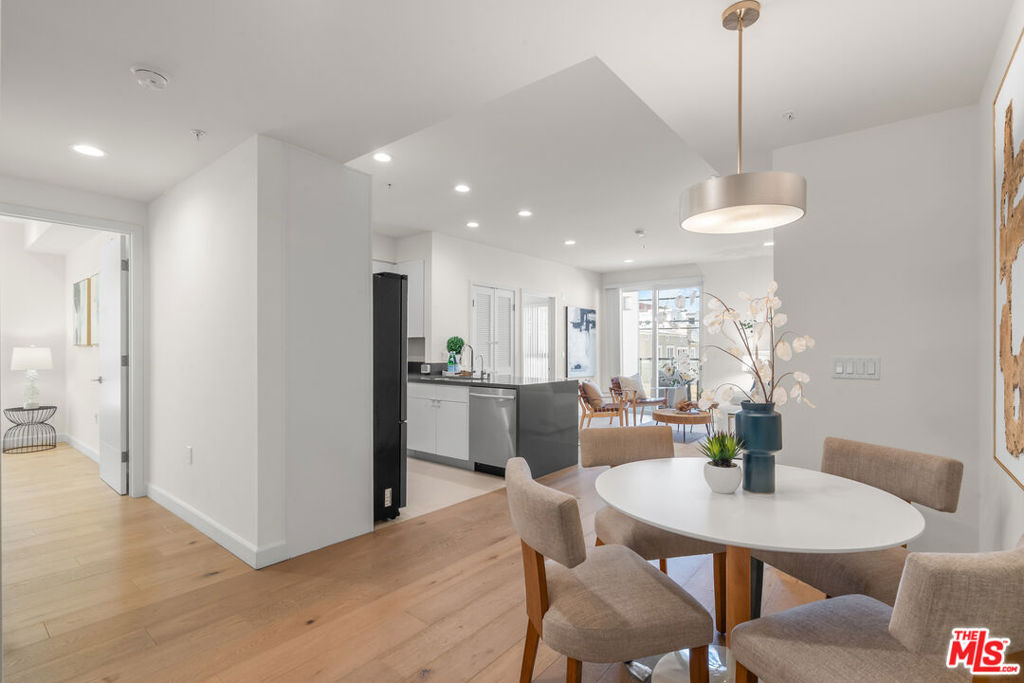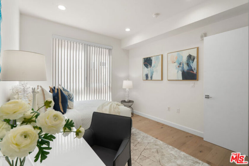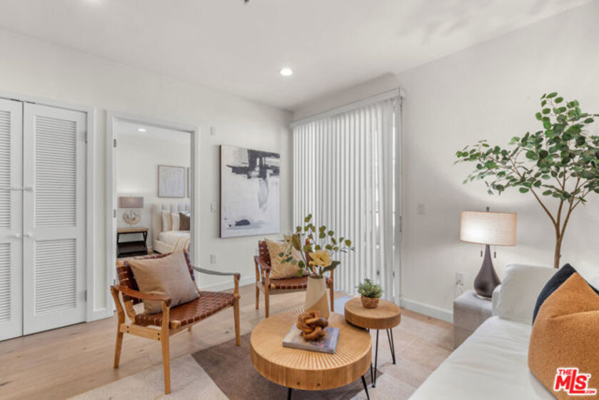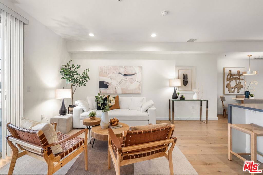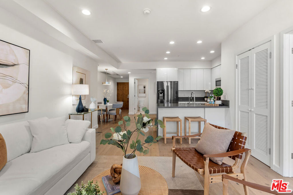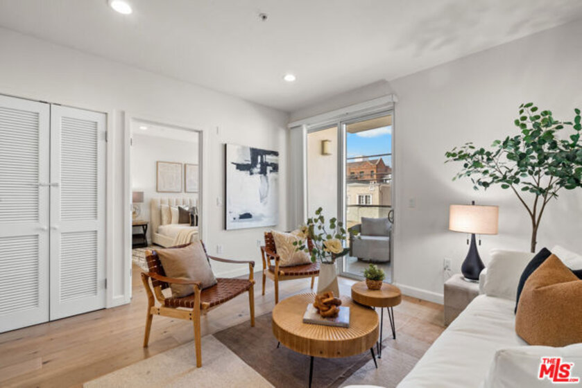 Residence 202 at Mari Villa offers a rare blend of privacy, light, and modern comfort in the heart of Mid-Wilshire/Korea-town. Positioned on the desirable south-west corner, this unit enjoys abundant natural light throughout the day along. With no unit below, it provides an added level of quiet enjoyment that is hard to find in condo living. Built in 2017, the home features a well-designed 2-bedroom, 2-bath layout with high ceilings and an open-concept living and dining area that flows seamlessly to a generously sized private balcony ideal for relaxing or entertaining. The interior is finished with wide-plank wood flooring, recessed LED lighting, dual-pane windows, and central HVAC for year-round comfort.The modern kitchen is both functional and stylish, complete with quartz countertops, sleek cabinetry, stainless steel appliances, a gas range, and ample workspace for everyday living. The spacious primary suite includes two closet with built-in organizers and a well-appointed en-suite bath. The secondary bedroom is thoughtfully positioned for privacy and flexibility. Additional highlights include in-unit laundry, two assigned parking spaces, and a dedicated EV charging system an increasingly valuable feature for today's lifestyle. The building offers controlled access, a secured parking garage, guest parking, and nighttime security for peace of mind. HOA dues include cable, internet, trash, and common area maintenance. Centrally located just minutes from dining, shopping, and entertainment, with convenient access to major freeways and public transit, this home combines urban convenience with a comfortable residential feel. A rare opportunity to own a private corner unit in one of LA's most vibrant neighborhoods.