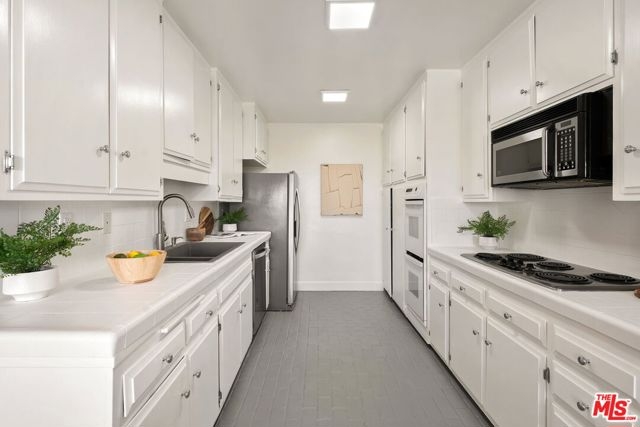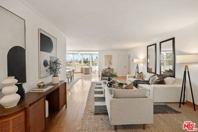 Rare sun-filled top floor penthouse in prime Westwood. This quiet, spacious 3-bedroom, 2-bathroom top floor unit offers a bright, sun-filled retreat in the heart of Los Angeles. The expansive open floor plan seamlessly connects the kitchen, dining, and living areas, creating the perfect space for both everyday living and entertaining. Beautiful wood floors flow throughout the main living spaces, and a dramatic wall of windows in the great room floods the home with natural light while showcasing lovely views of Los Angeles and the surrounding neighborhood. Clean kitchen with stainless appliances and new cook-top stove. The luxurious primary suite features a spa-like remodeled bathroom and generous closet space, while two additional spacious bedrooms are complemented by an upgraded hall bathroom, perfectly balancing comfort and style. Thoughtful contemporary upgrades throughout combine with a warm, inviting atmosphere. The penthouse includes 2 parking spaces in a small boutique building. Centrally located just minutes from coffee shops, dining, shopping, Westfield Century City Mall, Westwood Village, UCLA, and major freeways, this home perfectly blends luxury, style, and Westside convenience. Don't miss this rare Los Angeles gem.