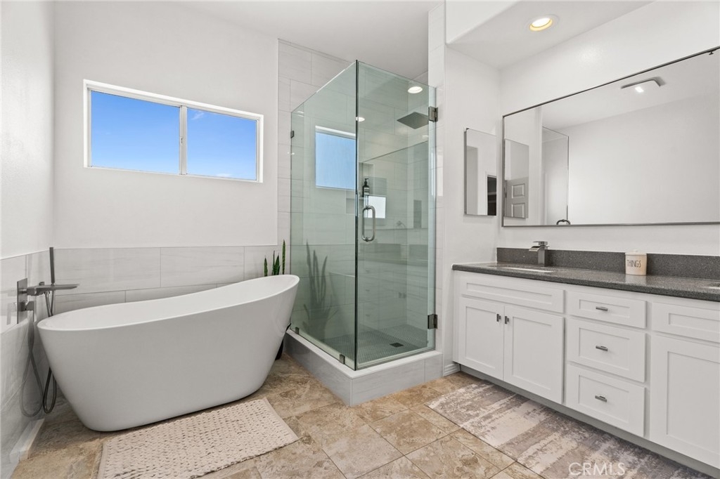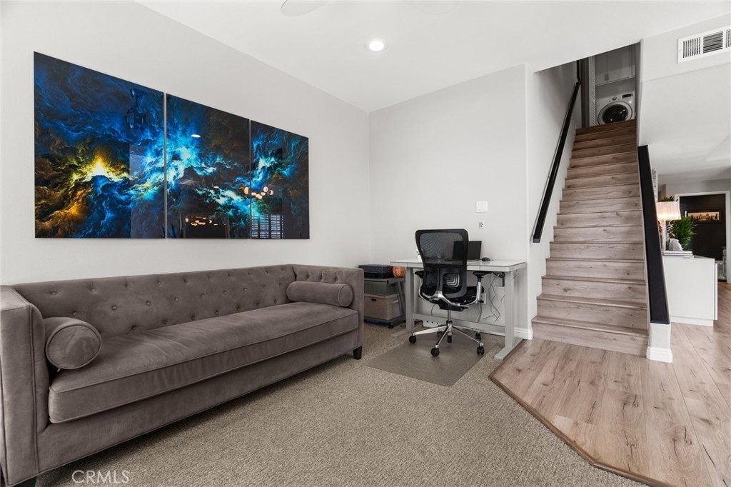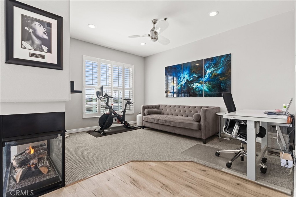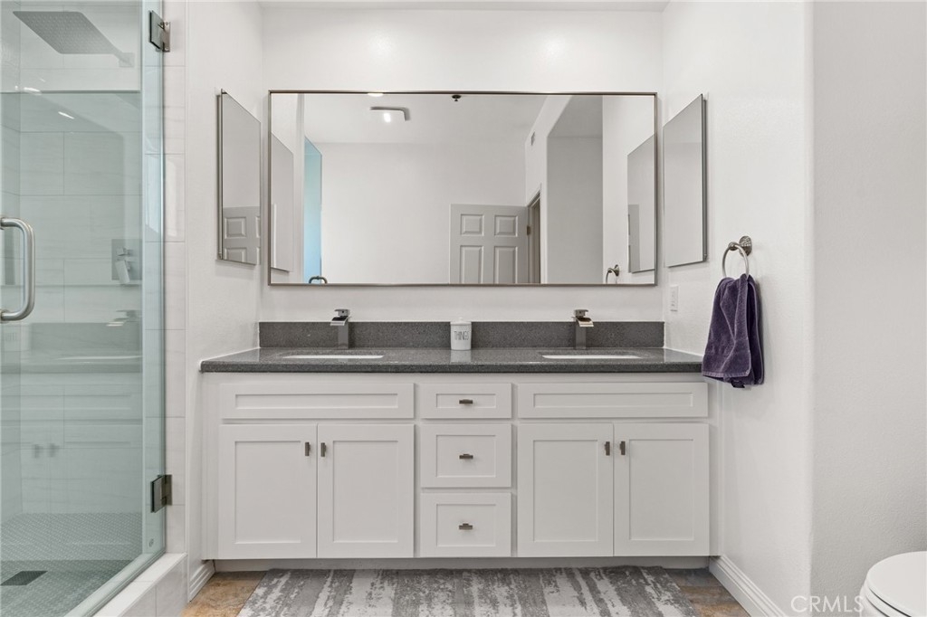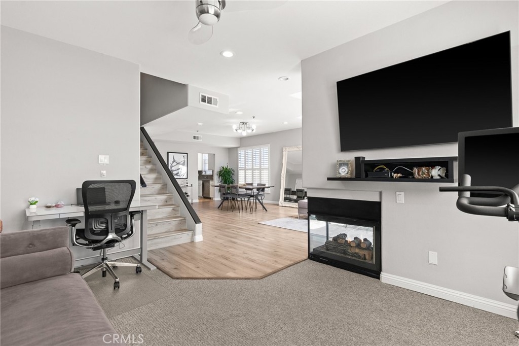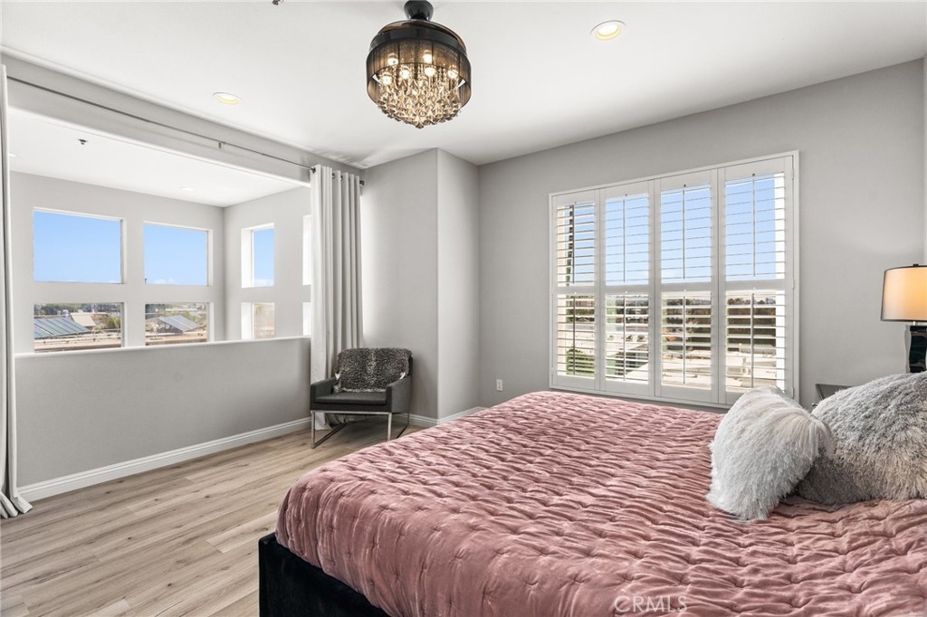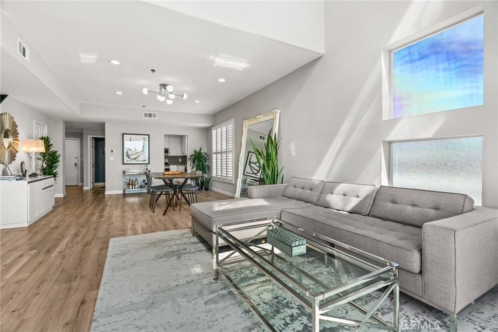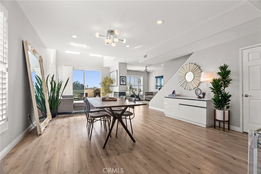 Top Floor. South Facing. Corner Unit with Views! Spacious Balcony + Tons of Natural Light, along with 2 car Side by Side Parking. This 2 Bed/2.5 Bath + Den, 1698sqft updated two story townhouse style condo checks every box! Kitchen features updated stainless steel appliances with quartz countertops. Spacious living and dining areas plus separate den/office with passthrough gas fireplace & updated wood laminate flooring throughout. High ceilings with large windows lead to a roomy south facing balcony with great city & mountain views. 2nd floor features south facing primary bedroom with freshly remodeled ensuite + separate soaking tub and custom tiled shower plus separate walk-in custom closet. Second bedroom also boasts a recently updated ensuite bathroom. Other key features include: Central HVAC, plantation shutters and 2 car side by side parking. Building features include: Gym, Pool, Spa, Guest Parking and Bldg EQ Insurance. Centrally located to the 10 & 405 Freeways, 85 Walk Score, and only 1.5 miles from all the great amenities of Downtown Culver City! Also close to Palms Expo Line Station, Amazon Studios, Apple and Google.