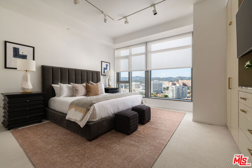 With private, direct elevator access, this spacious north-facing residence at the prestigious Californian offers a true sanctuary in the sky. Recently upgraded with new cabinetry, carpeting, and paint, this modern three-bedroom home blends clean contemporary design with timeless sophistication.Expansive floor-to-ceiling windows frame unobstructed city, mountain, and ocean views, while the open-concept living and dining areas are enhanced by a marble-lit bar perfect for elegant entertaining. The chef's kitchen features Miele appliances, a custom breakfast banquette, and a built-in television that discreetly retracts when not in use.The luxurious primary suite includes dual walk-in closets, two additional bath closets, and a spacious bathroom with separate soaking tub and shower. Four designated parking spaces are included, along with an optional separate maid's studio.Residents of The Californian enjoy world-class amenities including 24-hour concierge, valet, security, guest parking, doorman, and reception services offering the ultimate in comfort, privacy, and convenience.