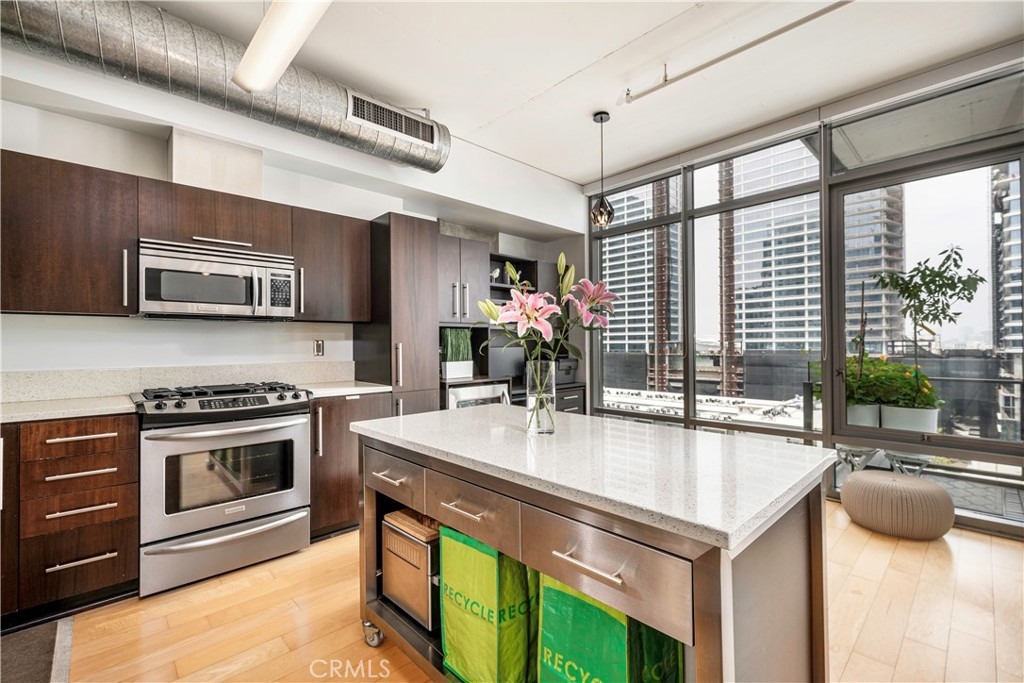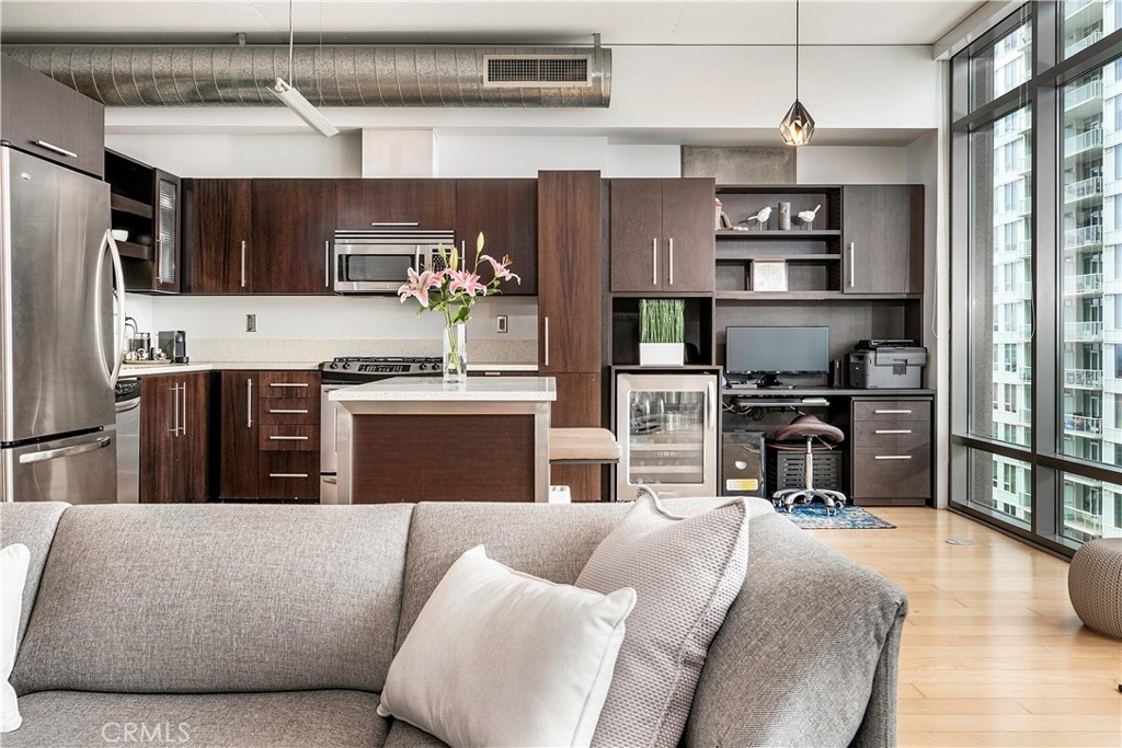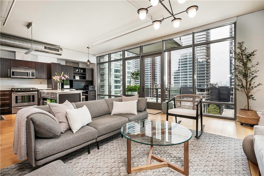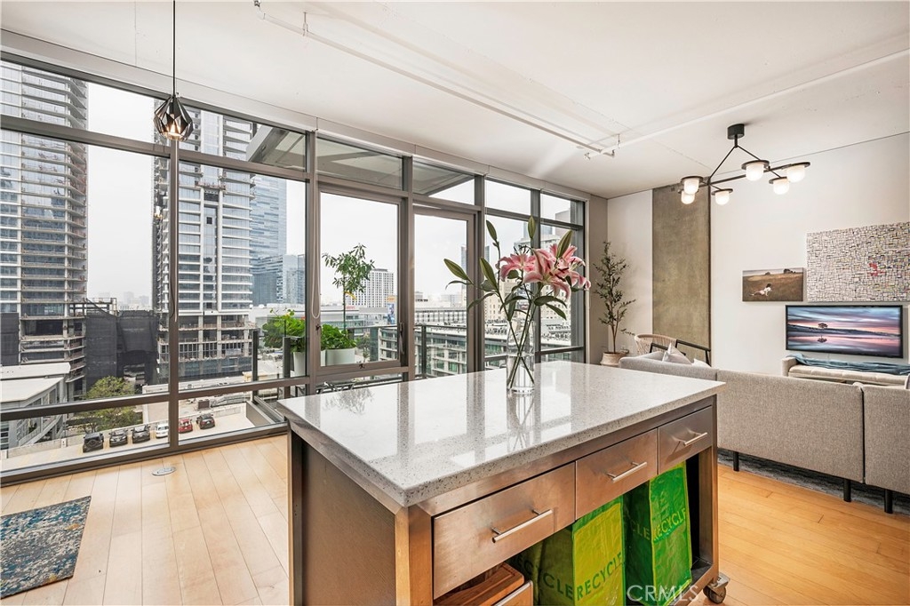 Welcome to the coveted Luma South Park high-rise lofts located in the heart of Downtown Los Angeles. Modern and completely Upgraded 1 Bed/ 1 Bath unit features an open floor plan, High Ceilings, Flex Wall, Replaced HVAC, and 1 deeded parking space with an EV charger. Acacia wood cabinetry, European Pull-out Faucets, and Caesarstone quartz countertops are among the notable upgrades in this all custom kitchen. Quartz countertop kitchen island features a breakfast bar centrally located in perfect view of oversized windows facing the city skyline. Enjoy the bonus of a built-in dry bar with triple temp beverage fridge and dedicated work space. Floor to ceiling windows draw in remarkable natural lighting and open to a West facing Balcony showcasing panoramic views. Home also is customized with smart technology integrations and control with Hue Lighting System, August Smart Lock, Nest Temperature Control, and an Alexa control panel for convenience. Luma community provides an exquisite resort lifestyle with a pool and spa, patio fireplace, outdoor BBQ, concierge service, 24/7 Security, and Fitness Center! Experience Luxury living in a green and sustainable LEED certified residential building that features both Sound Isolation and Energy Conservation. Live within minutes of L.A Live, Microsoft Theater, The Ritz-Carlton, Crypto.com Arena, and more local shopping and eateries! Built-in Smart Integration, In-unit Washer/Dryer, Staging Furniture, and Primary Large Appliance may be requested in the offered price.