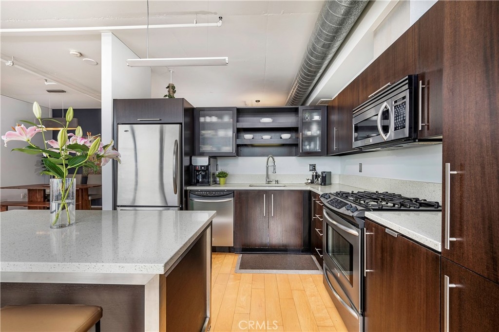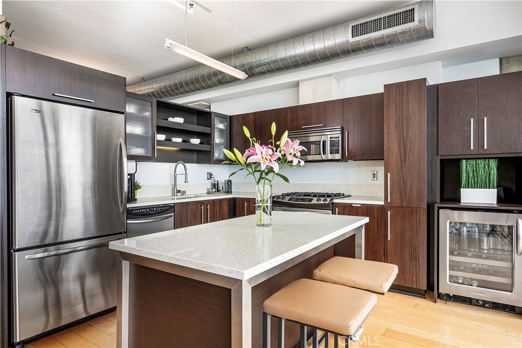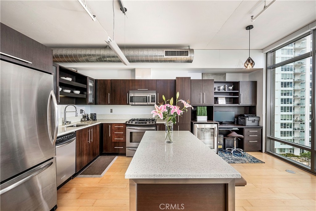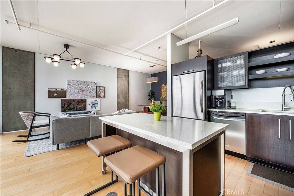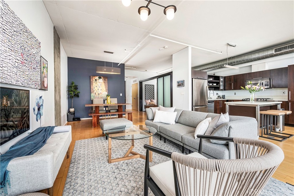 Welcome to the coveted Luma South Park high-rise lofts located in the heart of Downtown Los Angeles. Modern and completely Upgraded 1 Bed/ 1 Bath unit features an open floor plan, High Ceilings, Flex Wall, Replaced HVAC, and 1 deeded parking space with an EV charger. Acacia wood cabinetry, European Pull-out Faucets, and Caesarstone quartz countertops are among the notable upgrades in this all custom kitchen. Quartz countertop kitchen island features a breakfast bar centrally located in perfect view of oversized windows facing the city skyline. Enjoy the bonus of a built-in dry bar with triple temp beverage fridge and dedicated work space. Floor to ceiling windows draw in remarkable natural lighting and open to a West facing Balcony showcasing panoramic views. Home also is customized with smart technology integrations and control with Hue Lighting System, August Smart Lock, Nest Temperature Control, and an Alexa control panel for convenience. Luma community provides an exquisite resort lifestyle with a pool and spa, patio fireplace, outdoor BBQ, concierge service, 24/7 Security, and Fitness Center! Experience Luxury living in a green and sustainable LEED certified residential building that features both Sound Isolation and Energy Conservation. Live within minutes of L.A Live, Microsoft Theater, The Ritz-Carlton, Crypto.com Arena, and more local shopping and eateries! Built-in Smart Integration, In-unit Washer/Dryer, Staging Furniture, and Primary Large Appliance may be requested in the offered price.