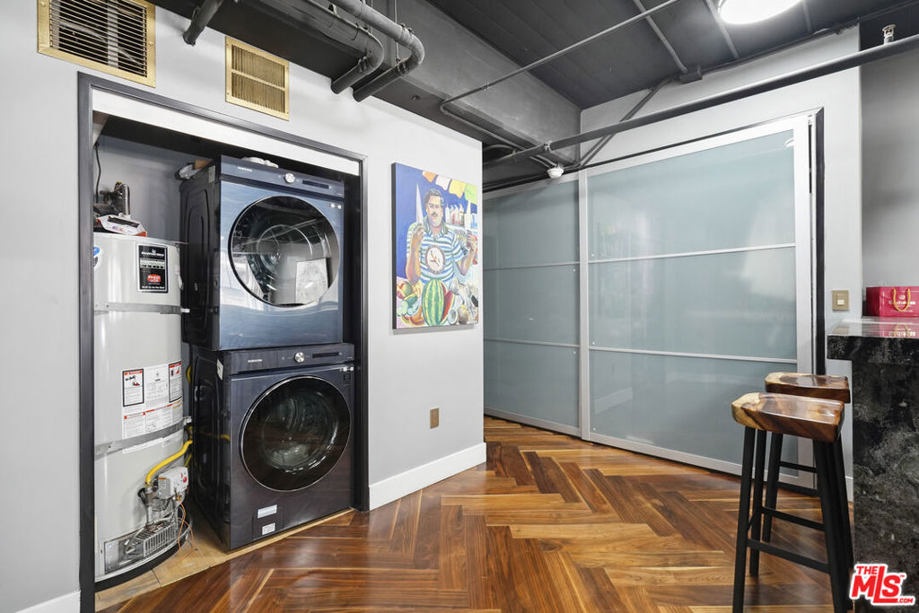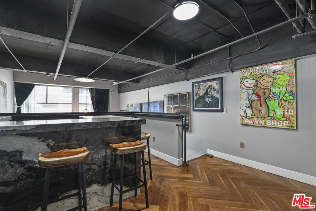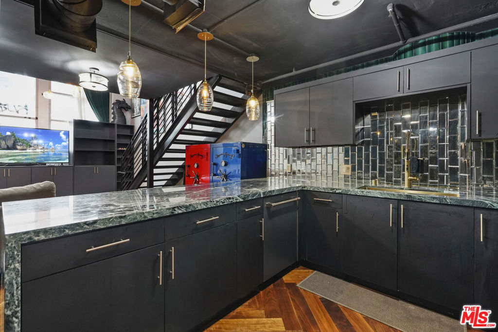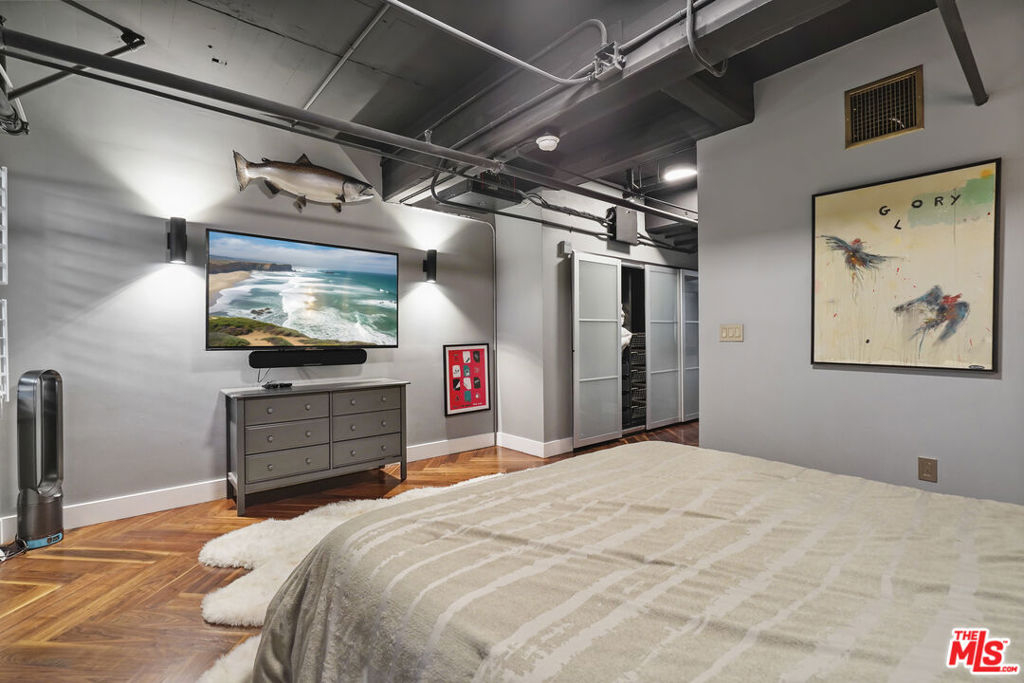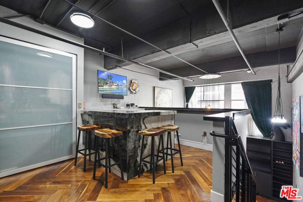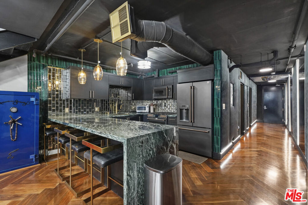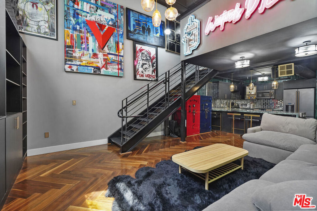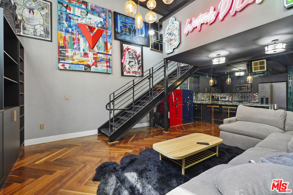 PRICED TO SELL!! Seller put in $300K on the remodel since purchased- making this an incredible value. Truly a steal at this price! Urban Luxury Living at Flower Street Lofts! Experience elevated city living in this stunning 2-story, ground-level loft at the sought-after Flower Street Lofts, nestled in the heart of South Park, Downtown Los Angeles. Spanning appx 1,420 SF, this versatile live/work space showcases an expansive open floor plan with soaring 20+ foot ceilings and a meticulous $300K remodel featuring sophisticated, high-end finishes. Step through a dramatic entry adorned with velvet accent walls and custom LED lighting, flowing seamlessly into herringbone walnut flooring throughout. The first level offers a bedroom with built-in storage and a Murphy bed, a stylish bathroom with a large shower and extra storage space, and a gourmet kitchen featuring super matte black custom cabinetry, striking green marble countertops, and premium stainless steel appliances. Upstairs, the spacious primary suite includes custom-organized closets, a luxurious bathroom with double shower heads and sleek vanity, an in-unit washer and dryer, and a newly added custom bar- ideal for entertaining. Amenities include two secured parking spaces (one covered and one uncovered) in the adjacent structure accessed via a fourth-floor bridge. The HOA covers Spectrum package with high-speed internet, basic cable plus HBO Max and Showtime, building insurance, and water. Located just steps from LA Live, Crypto.com Arena, Whole Foods, and Ralphs, this property offers an unbeatable combination of style, comfort, and convenience, with easy freeway access and exciting new developments underway in preparation for the 2026 World Cup and 2028 Olympics.