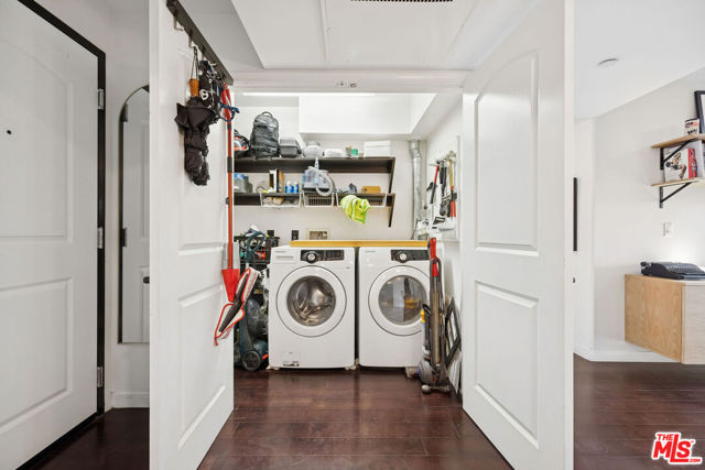 Welcome to this stylish end unit with a large patio, plus an additonal balcony. One of only 16 units in a well-kept, modern building. This 2-bedroom, 2-bath home offers an open and functional layout perfect for modern living, with the kitchen featuring granite countertops and flowing seamlessly into the dining area and spacious living room, complete with hardwood flooring throughout. Enjoy a cozy evening by the fireplace or relax on the airy private balcony. The primary suite includes a large walk-in closet and large en-suite bathroom. The second bedroom has custom cabinetry for the perfect office. Additional highlights include a tankless water heater, smart thermostat, hue lighting system, intercom system, and in-unit side-by-side washer and dryer. This home also offers two assigned tandem parking spaces within a secure, gated garage. Conveniently located near the Galleria Mall and the vibrant dining and entertainment options of Koreatown, with easy access to Downtown Los Angeles.