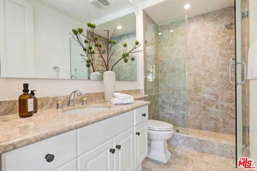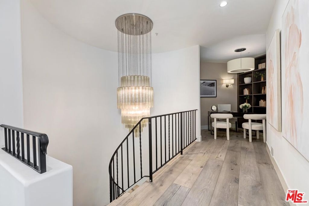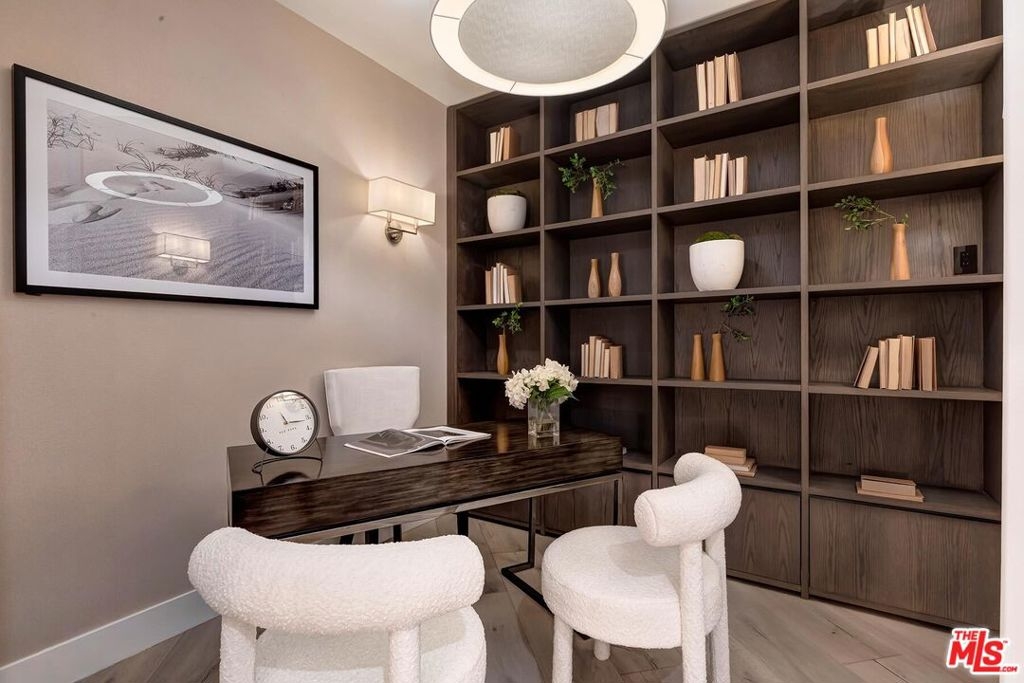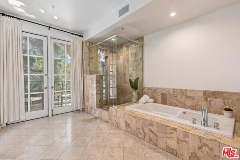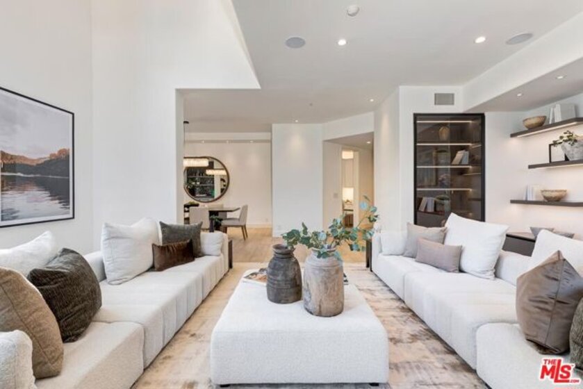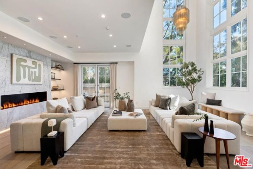 EASY PARKING FOR SHOWINGS- VALET Situated within The Brentwood, one of the neighborhood's most coveted full-service residences, this sophisticated corner townhome offers a rare blend of privacy, scale, and elevated living. Designed for those who appreciate both luxury and discretion, the residence enjoys the conveniences of a premier building with the feel of a private home. Residents of The Brentwood enjoy an exceptional suite of amenities, including 24-hour concierge, on-site management, spacious fitness center, rooftop pool and spa with sweeping city views, elegant banquet facilities, valet parking, and private storage.The main level unfolds into a dramatic, light-filled living space highlighted by soaring double-height ceilings and expansive picture windows an impressive setting for both intimate living and grand entertaining. A formal dining room with custom wet bar seamlessly connects to the chef's kitchen, which is outfitted with top-tier appliances, generous counter space, and thoughtful storage, making it as functional as it is refined. Multiple outdoor spaces, including a generously sized private patio, extend the living experience outdoors. A stylish powder room and full laundry room complete the main level. A gracefully curved grand staircase leads to the upper floor, where a serene office or library bonus space creates an ideal retreat for work or relaxation. The primary suite is a true sanctuary, with a spa-inspired en-suite bath, two substantial closets, and a private balcony overlooking lush surroundings. The second en-suite bedroom, also with balcony access, offers exceptional comfort and privacy for guests or family. Ideally located in the heart of Brentwood, moments from acclaimed dining, upscale boutiques, and cultural destinations, this exceptional residence presents a rare opportunity to enjoy refined living within one of Los Angeles' most desirable communities.