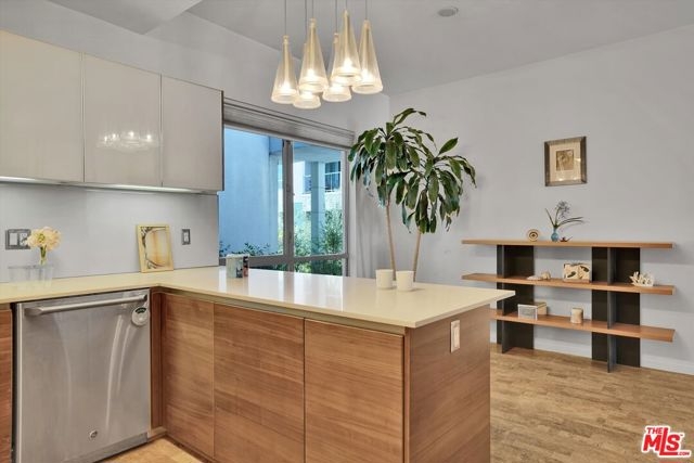 Unique Live/Work Loft in Sawtelle Japantown neighborhood! Rare opportunity at T-Lofts, a modern LAC2-zoned mixed-use community by Withee Malcolm Architects. This stylish two-level townhome-style loft offers approx. 1,647 sq ft with 1 bedroom and 1.5 baths for comfortable residential living, plus a spacious downstairs creative or professional workspace with street front private entryperfect for entrepreneurs, designers, remote workers, or anyone seeking a home and office in one. Experience a one-of-a-kind layout that sets this space apart offering full separation between living and working areas, unlike any other live/work design on the market. The upper level features an open-concept living and dining area, a sleek kitchen with stainless steel appliances, Caesarstone countertops, imported Italian cabinets, and Porcelanosa tile backsplash, and a bright primary suite with a spa-inspired bath featuring marble floor, dual sinks, separate shower, soaking tub, and walk-in closet. Custom movable panels from Sliding Door Company provide added privacy, a quiet atmosphere, and the flexibility to open up the space as needed. Modern finishes throughout, plus BOSCH laundry in-unit, central HVAC, and two assigned garage parking spaces (non-tandem) in a secure building. Community amenities include a fitness center, BBQ area, spa, abundant guest parking, and EV charging stations. Prime location just blocks from lively Sawtelle Blvd, known for its acclaimed Japanese eateries, coffee shops, and cultural spots. Expo Line stations nearby for fast Downtown and Santa Monica access. An exceptional blend of lifestyle and work flexibility....Schedule your viewing today! 3D tour available from the link above or: https://my.matterport.com/show/?m=19LoVNoHC5B