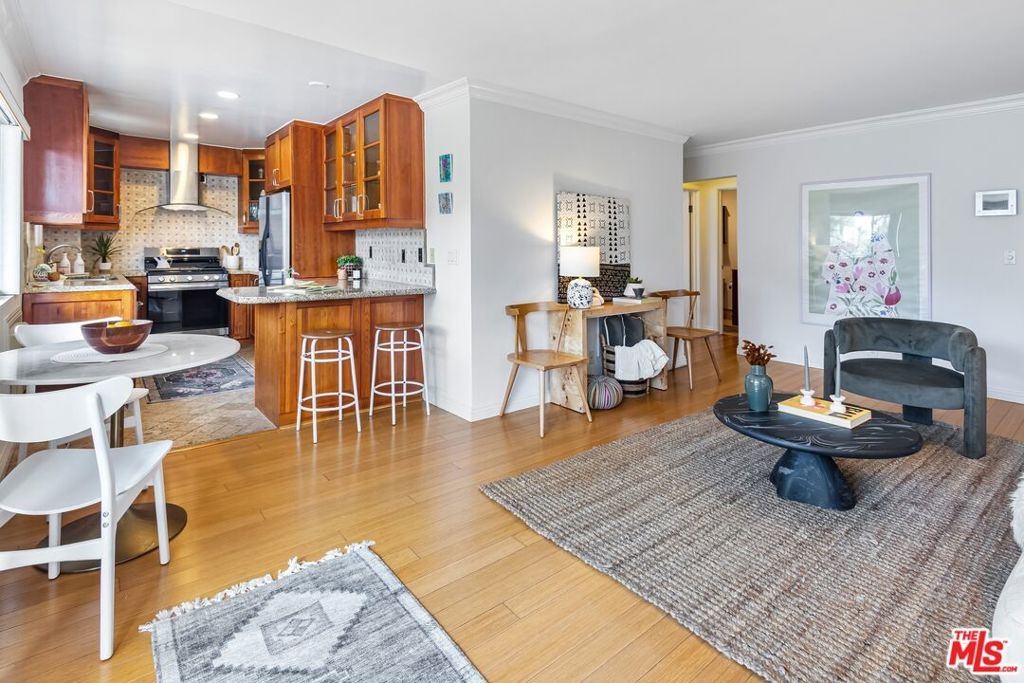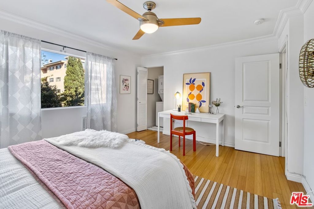 Live the quintessential Westside lifestyle in this stylish and serene one-bedroom, one-bath condo located in the heart of Brentwood. This bright corner unit offers an open and airy layout with abundant natural light, bamboo wood and tile flooring, and a spacious living room that opens to a street facing balcony. The modern kitchen features granite countertops, stainless steel appliances, and a brand-new Samsung stove/oven, perfect for cooking and entertaining. Enjoy the convenience of IN-UNIT LAUNDRY (closet in bedroom), ample storage, and one covered parking space. The building offers resort-style amenities including a pool, sauna, and a newly updated fitness center (2020). Freshly painted and move-in ready, this condo is moments from Brentwood's trendy restaurants, shops, UCLA, and with easy access to Santa Monica, Westwood, and major freeways.