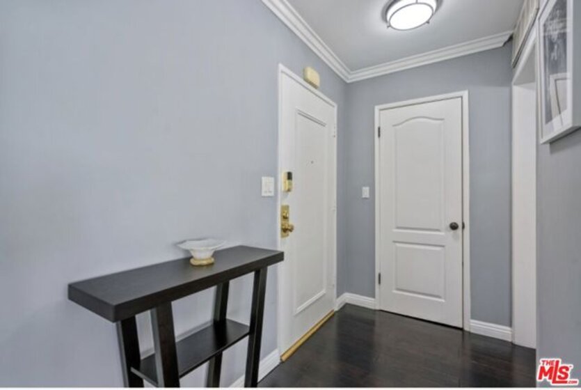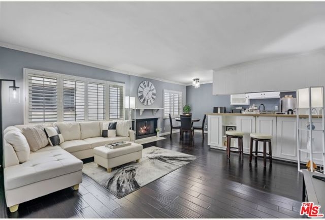 Stylish 1BR/BA condo in prime Brentwood! Tucked on a quiet cul-de-sac near Brentwood Village and Rec Center, this updated bright 4th floor unit features an open floor plan with a spacious dining/living room and gas-burning fireplace. The adjacent kitchen boasts stainless steel appliances, custom cabinetry and a breakfast bar. A generous primary bedroom and updated full bath. Other features include plantation shutters, crown molding, and three closets for tons of storage space. Updates include newly installed central HVAC system, dual-pane windows and a Nest thermostat. Building offers rooftop sundeck, community laundry and secure gated garage with one assigned parking space. Offered furnished or unfurnished. Low HOA dues include water, gas and earthquake insurance. No pet restrictions. Walk to shops, dining, Whole Foods and Barrington Park - a true Westside gem! Great investment or owner user!