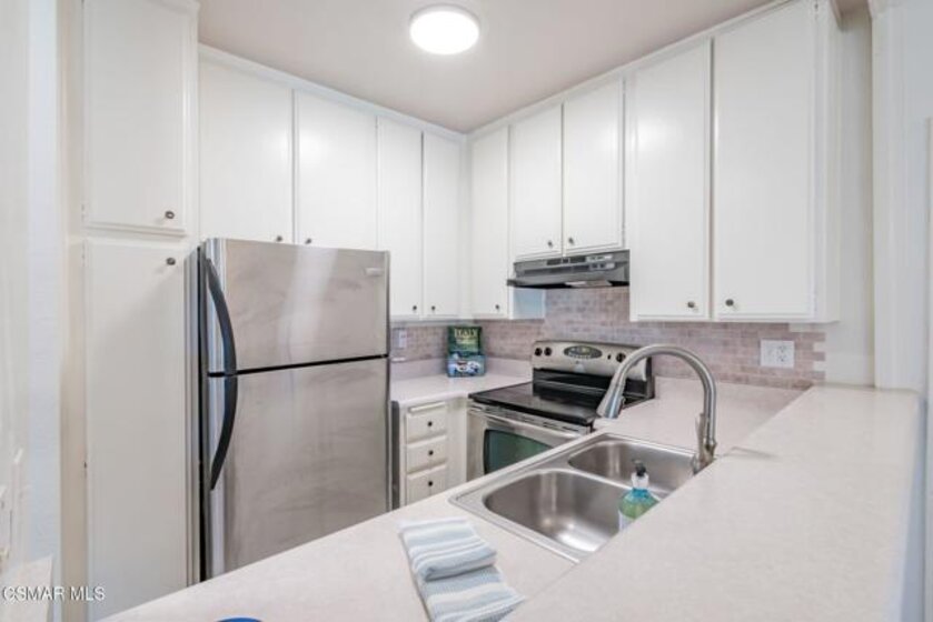 NEW PRICE - GREAT LOCATION!Welcome to your serene retreat in the heart of Brentwood! This top floor condo offers a peaceful escape with a private garden view that provides a tranquil backdrop to your daily life.Step inside to a light filled living space. The well appointed kitchen features stainless steel appliances with electric range, and opens to the dining and living space for convenient entertaining. The primary bedroom and additional office/bedroom offer comfortable private spaces with an abundance of closet storage. This secure, vintage building provides an array of amenities, including a sparkling pool, relaxing spa, and rejuvenating sauna. Laundry facilities are conveniently located on each floor. For your peace of mind the building has secure lobby entry with elevator, a part-time guard, and gated secure garage. This unit provides two tandem parking spaces.Located near vibrant, desirable San Vicente Blvd with coffee, dining and shopping options. Don't miss the opportunity to live in this coveted Brentwood location. The perfect blend of comfort, security, and lifestyle.