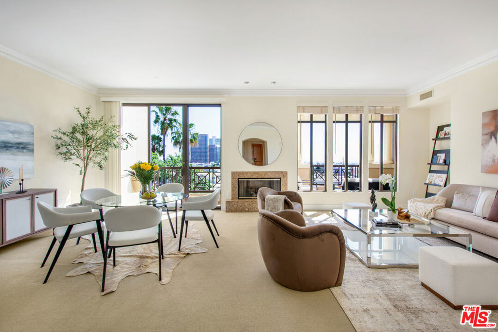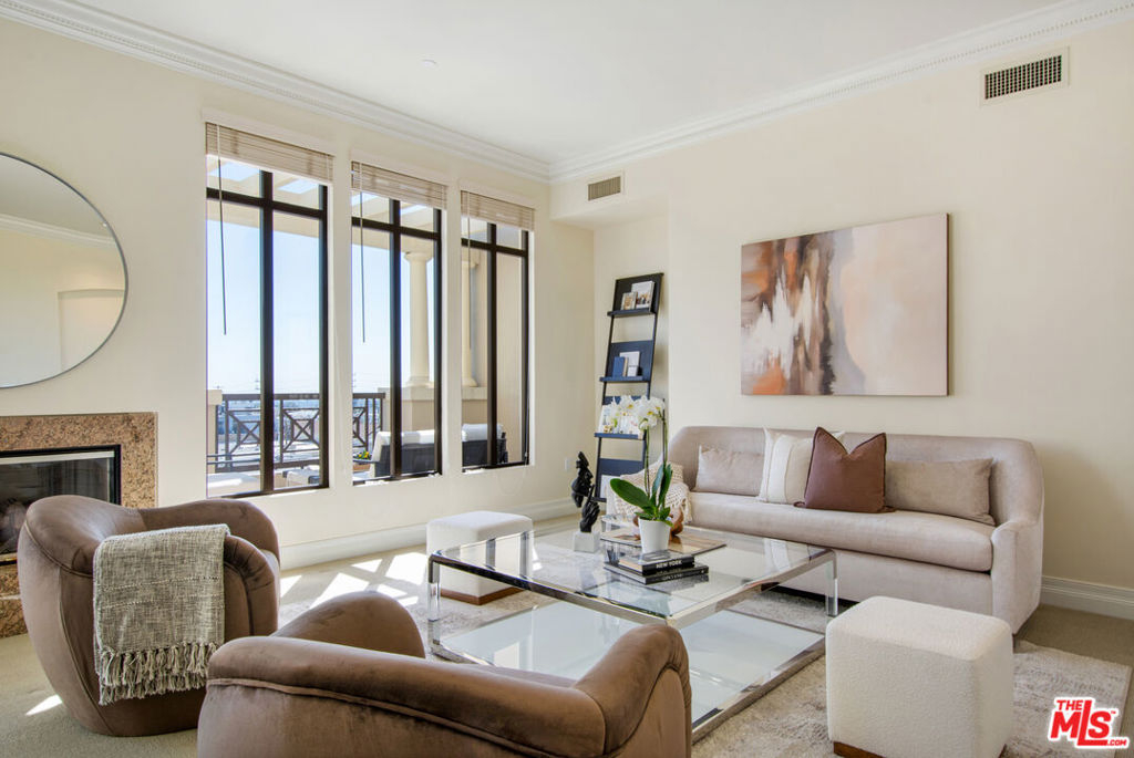 Experience the pinnacle of Brentwood sophistication. Perched atop the prestigious Westgate Condominiums, this breathtaking 2-Bedroom, 2.5-Bathroom Penthouse plus spacious Den is a masterclass in coastal-urban luxury and an entertainer's delight. Originally hand-selected by the developer, this residence boasts soaring 10-foot ceilings and an expansive, sun-drenched floor plan anchored by a stately gas fireplace. Designed to inspire, every corner of the home captures a symphony of vistas, from the rugged beauty of the Santa Monica Mountains and the Getty Center to enchanting peek-a-boo ocean views shimmering in the distance. The gourmet kitchen features an eat-in layout with mountain views and sliding-door access to a terrace, perfect for morning coffee or outdoor dining. Spanning four magnificent terraces totaling approximately 500 sq. ft. the indoor-outdoor flow is simply unparalleled. The palatial primary suite is a true sanctuary, bright and inviting with a fireplace, private sitting area, walk-in closet, and a spacious spa-inspired marble bath featuring dual sinks, a soaking tub, and separate shower. For the discerning collector, the property includes a staggering, oversized private garage, a rare find with room for a third vehicle and secured storage. Hosting is effortless with 30+ dedicated guest parking spaces and a high-tech haven equipped with gigabit fiber and a bespoke 24/7 security system. Complemented by white-glove 24-hour concierge service, a fitness center, and a lush spa, this residence is situated moments from San Vicente's world-class dining, boutiques, coffee houses and markets. Unrivaled exclusivity and modern elegance await.