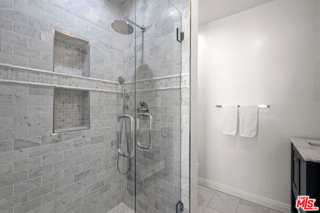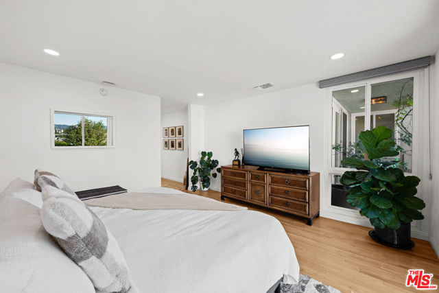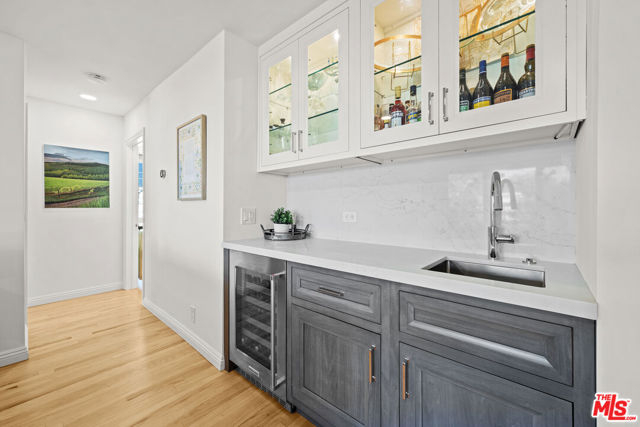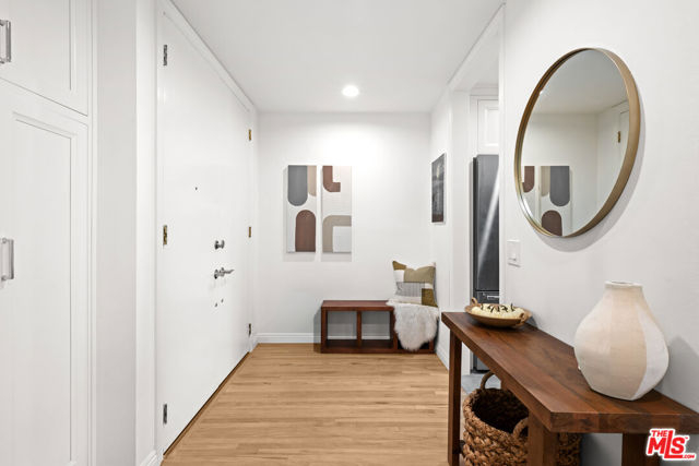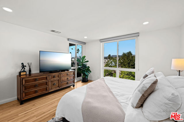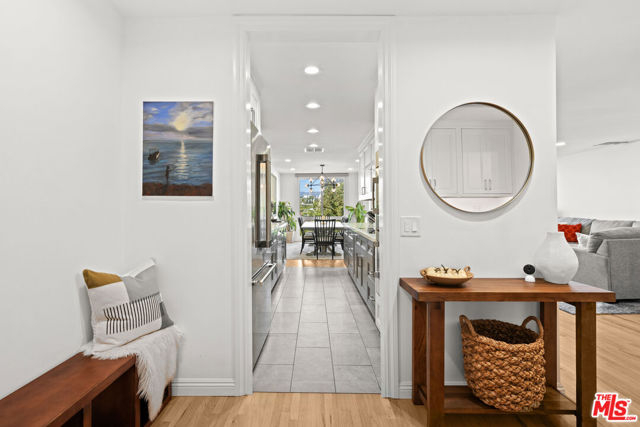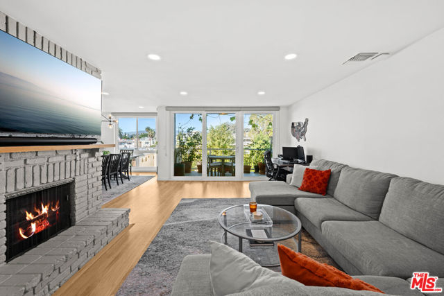 Stunning Top-Floor Corner Condo with Panoramic Views in Prime Brentwood! Discover this gorgeous front-facing 2-bedroom, 2.5-bathroom condo spanning 1,403 sq ft, perfectly positioned on the top floor of a beautifully maintained building in the heart of Brentwood. From the moment you enter through the stylish double doors, you're welcomed into a bright, inviting foyer that sets the tone for the elegance found throughout the home. Enjoy unobstructed treetop views that stretch to the mountains, filling the space with natural light and creating a serene and inspiring atmosphere for everyday living. Every inch of this residence has been thoughtfully updated with impeccable taste, showcasing beautifully refinished hardwood flooring, luxurious marble bathroom tiles, quartz countertops, newer kitchen appliances, gorgeous modern cabinets with under-cabinet lighting, a stylish wet bar with built-in wine fridge, recessed lighting, and custom window treatments. The spacious primary bedroom is a peaceful retreat with abundant windows showcasing the inspiring vistas, along with a beautifully updated en-suite bathroom and a generous walk-in closet. The cozy living room offers a comfortable space to unwind, complete with a fireplace for chilly evenings and direct access to your private balcony, perfect for morning coffee, sunset views, evening wine, or simply soaking in the scenery. A chic wet bar with wine fridge enhances the home's entertaining appeal. The fully equipped kitchen offers everything you need for effortless cooking and hosting. Additional highlights include an in-unit washer and dryer, newer HVAC and ducting, an upgraded electrical panel, double-pane windows, two-car parking with a private EV wall charger, secure building access, and unbeatable proximity to Brentwood's fabulous shops, restaurants, and neighborhood conveniences. Experience elevated living, exceptional style, and breathtaking views in this truly remarkable condo that captures the very best of the Brentwood lifestyle!
