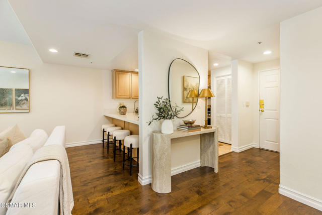 Sophisticated, private, and serene, this updated second-floor Brentwood condo offers 2 bedrooms, 2.5 baths, and 1,244 sq ft in a secure boutique building of just nine units. The open living space features engineered hardwood floors, a fireplace, a stylish dry bar, and flexible space for dining. The recently updated kitchen includes new quartz countertops, a breakfast bar, new stainless steel appliances, and abundant cabinetry.A powder room for guests, in-unit washer and dryer, and central A/C and heat provide everyday comfort and convenience. Both bedrooms are spacious with ensuite baths, while the primary retreat features a fireplace, walk-in closet, and a spa-like bath with a soaking tub and separate shower.With gated, fully covered parking, thoughtful updates, and a prime Brentwood location just blocks from top restaurants, shops, grocery stores, and popular yoga, Pilates, and cycling studios, this condo is move-in ready and the perfect blend of comfort and style.