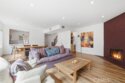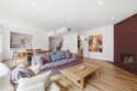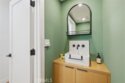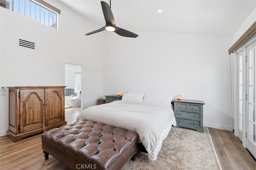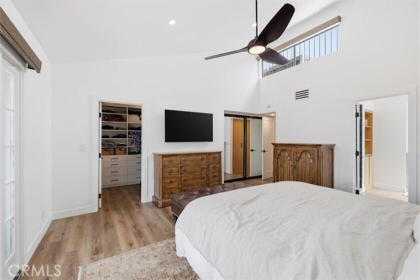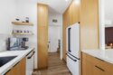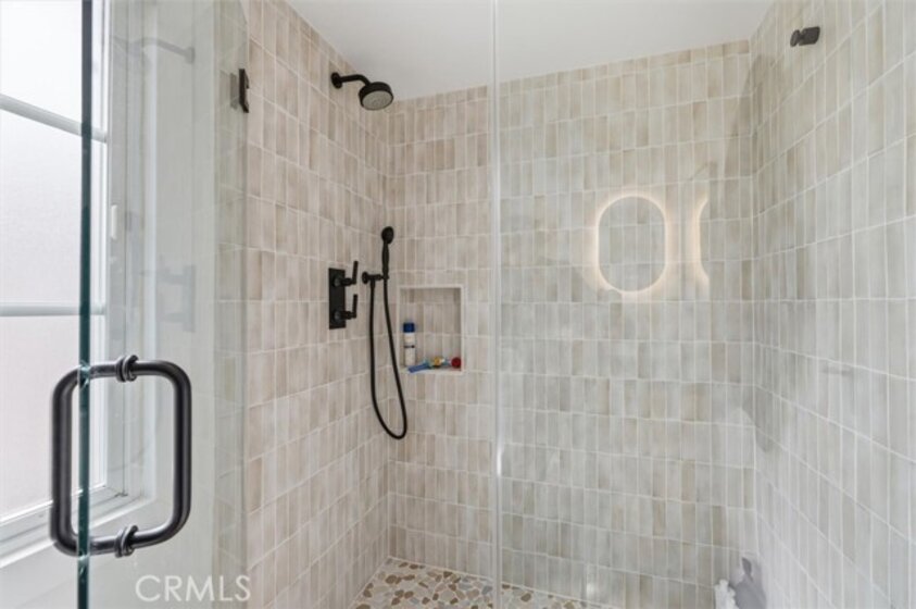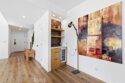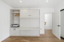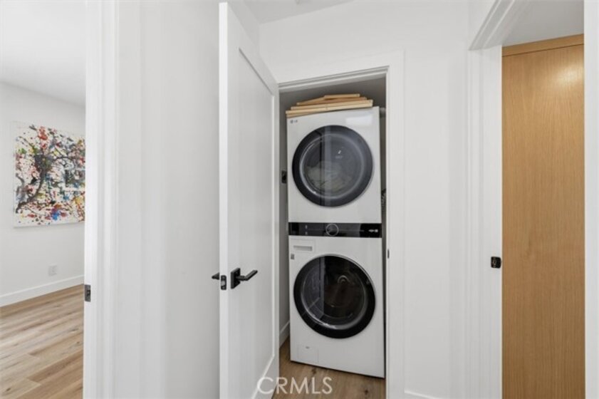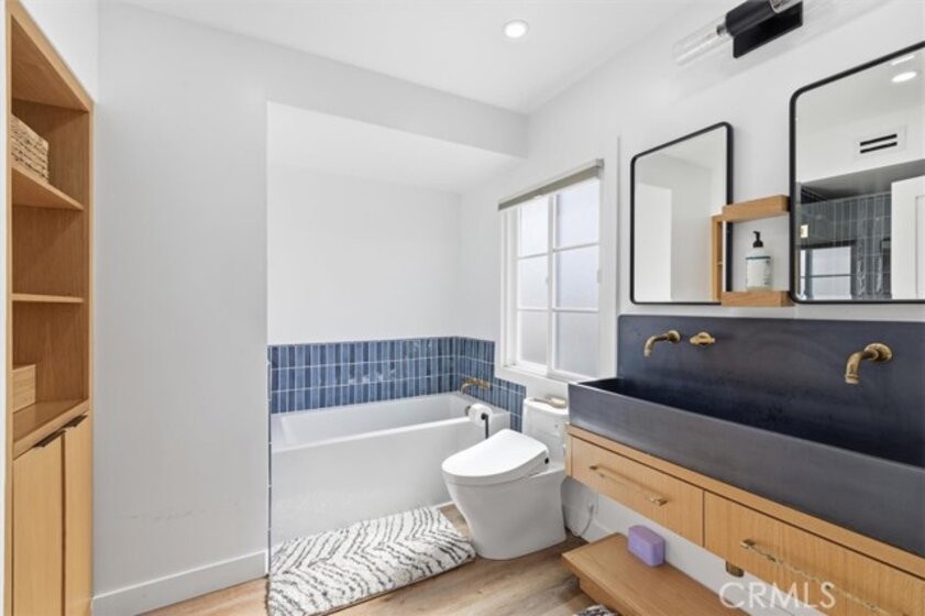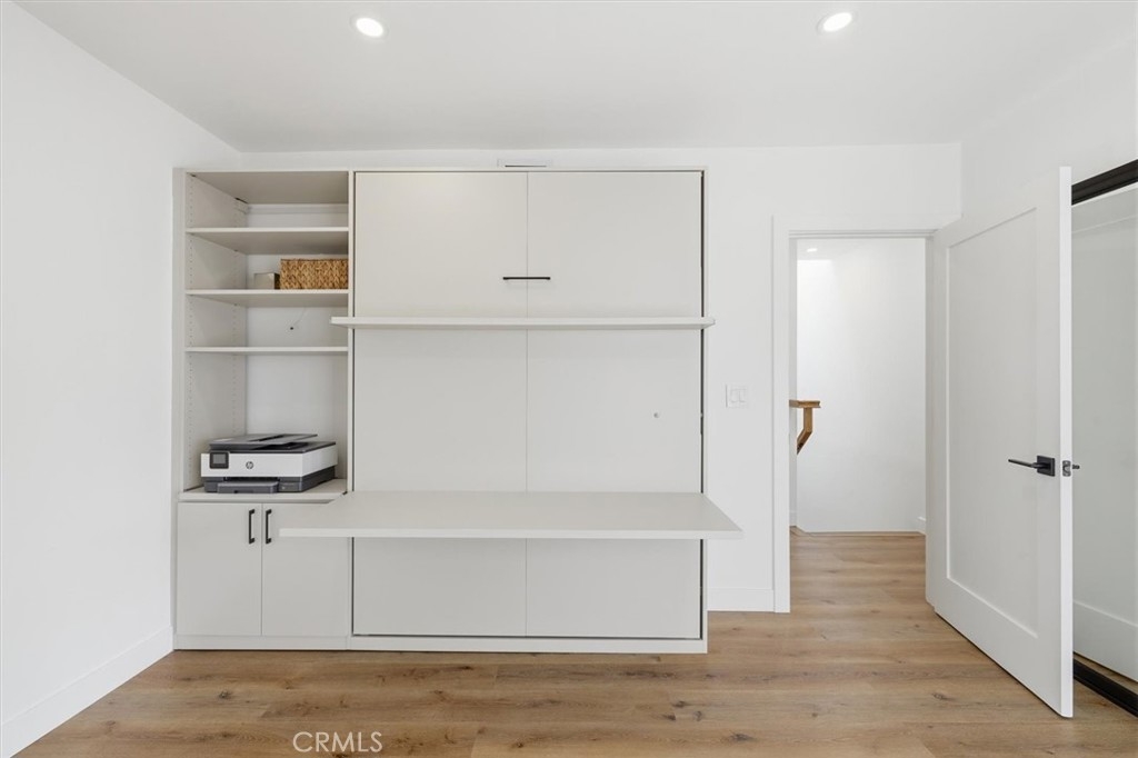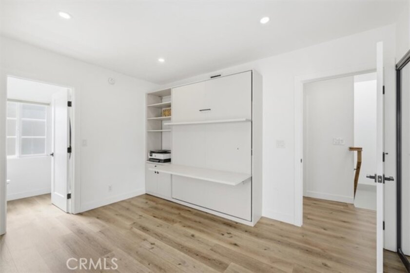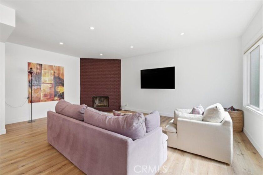 Completely remodeled with a focus on clean design and custom finishes, this 2-bedroom, 2.5-bath home offers a bright, open layout with abundant natural light and a true townhouse-style feel. The main level features wide plank engineered white oak flooring throughout, a spacious living and dining area with a gas fireplace, and a fully updated kitchen showcasing custom rift white oak cabinetry, quartz countertops, and Café appliances. A built-in dry bar with wine refrigerator adds both function and a thoughtful design element, along with a convenient updated powder room for guests. Upstairs, both bedrooms are en-suite, including a primary suite with vaulted ceilings, a walk-in closet, and a dual vanity bathroom with a separate tub and walk-in shower. The bathrooms have been fully remodeled with designer tile work, custom vanities, and updated fixtures. The secondary bathroom features a walk-in shower with full tile surround, glass enclosure, and modern finishes, while the secondary bedroom includes a custom Murphy bed, offering flexibility for guests or a home office. Additional features include a stackable washer and dryer upstairs, two tandem parking spaces, and a private patio enclosed with vinyl fencing, ideal for outdoor dining or BBQ. Located in a well-maintained 6-unit building just moments from Brentwood’s shops and restaurants along San Vicente and Montana Avenue.