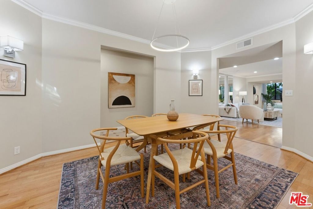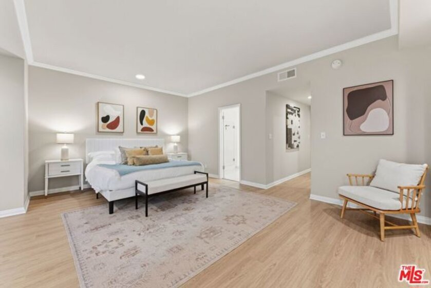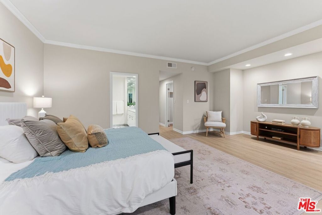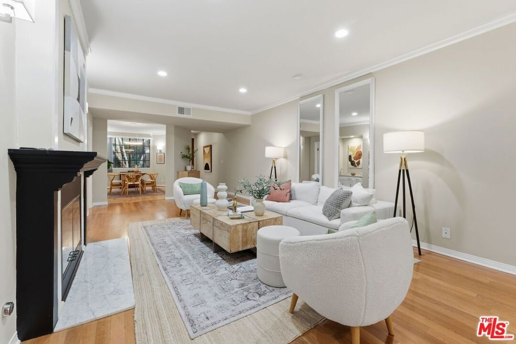 Looking For More Living Space? Come see this expansive single-level 2 bedroom + den + office + 2 bath condominium with nearly 1,700 sq ft. sq ft! Located in the heart of Brentwood and situated in a tranquil courtyard setting with lush greenery, bridges, & rocks with/mini waterfalls. Expansive living room with lovely hardwood floors, fireplace, crown molding, recessed lights & wet bar. Perfect for entertaining your family and friends. Large dining room that looks onto serene courtyard greenery. Eat-in kitchen with mostly stainless-steel appliances, wine cooler and pantry closet. Enormous primary bedroom with walk-in closet plus sitting area and work from home office space! Primary bathroom with marble vanity, double sinks & update shower. Bldg. amenities include: pool, gym, sauna, controlled access, elevator, gated parking, guest parking, bike storage & Earthquake Insurance. Near San Vicente Blvd's vibrant restaurants, trendy boutiques, Whole Foods, Alfreds Coffee & Famers Market.