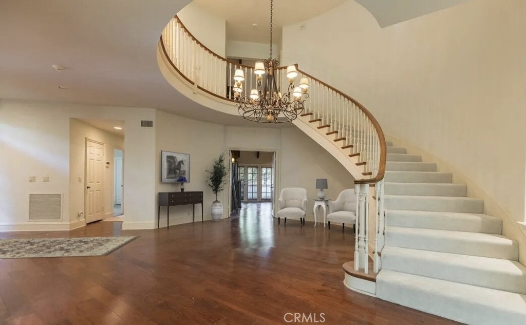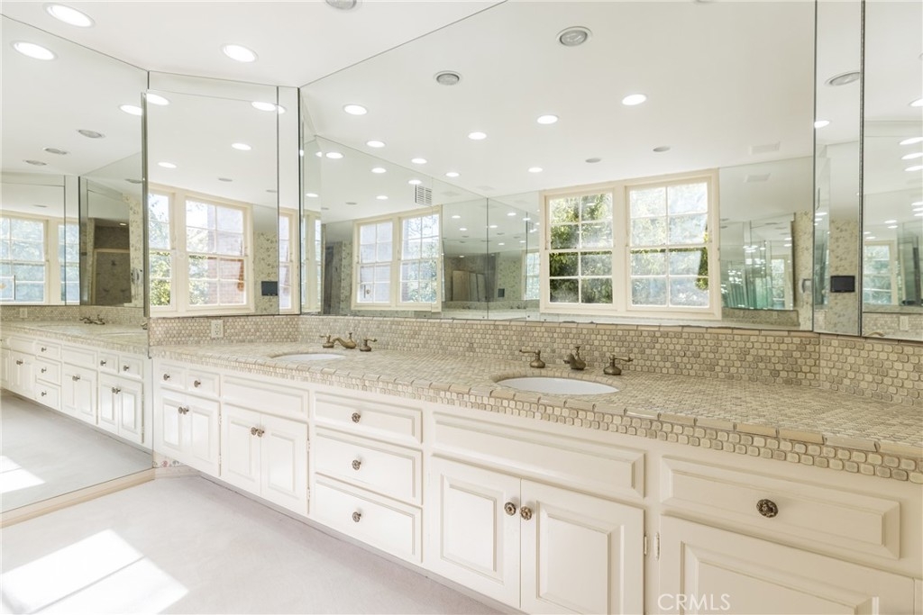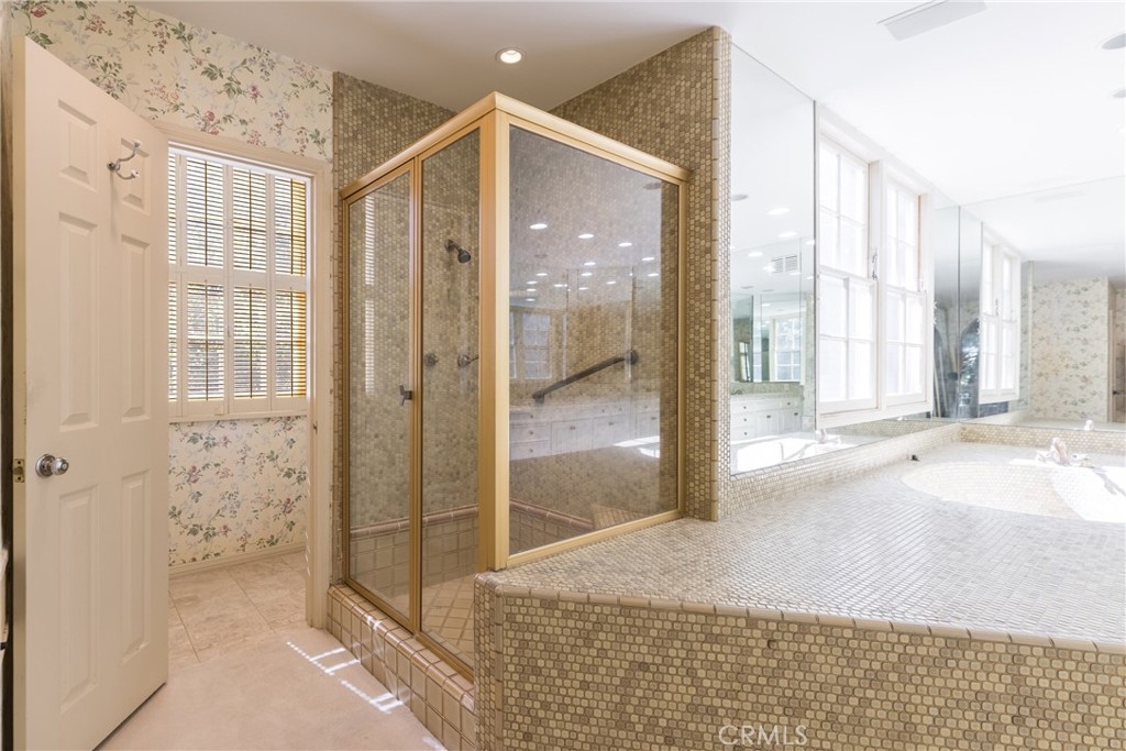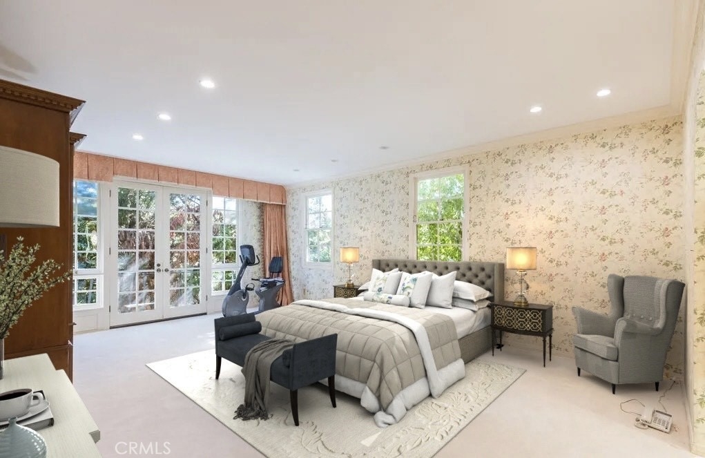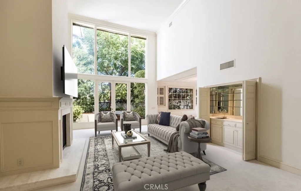 This exceptional 3-bedroom, 4-bathroom 4,018 square foot corner townhome delivers resort-style living in the highly desirable guard-gated Ridge area of Mountain Gate in Brentwood Hills. Located in a very secluded area with 24 hr. security and unmatched serenity. Stanley Kramer, American Film Director, was the original owner of this property set behind a private iron gate with a beautiful courtyard offering complete privacy with only one common wall. This lavish home boasts a formal entry, dramatic staircase, expansive living room with fireplace, wet bar, soaring vaulted ceilings, floor-to-ceiling luminous windows, and elegant French doors displaying a well-manicured wrap-around yard and patios that are perfect for entertaining or quiet relaxation in a zen-like atmosphere with mature trees and koi pond. Spacious eat-in kitchen featuring Miele refrigerator, Wolf dual-convection ovens, Bosch dishwasher, two walk-in pantries and center island. The kitchen has easy access to the formal dining and living areas. One bedroom with ensuite bathroom is conveniently located on the first floor. Additional highlights include a library with fireplace and its own private patio, a dedicated laundry room and a double-attached garage with direct access to the home. Upstairs, retreat to an over-sized luxurious primary suite with a sitting area and a private Juliet balcony with tree-lined views. A huge spa-like bath offers a soaking tub, dual vanities, and a separate shower and bidet. Separately located upstairs is a private 2nd bedroom that has easy access to a full bath. The HOA includes community Pool/Spa, Trash Valet, exterior EQ and Fire Insurance as well as roof coverage. You will have the option to join Mountain Gate Country Club that offers golf, tennis, spa and dining. Easy 405 Freeway access, shopping, dining & spectacular hiking trails. Enjoy the tranquil, resort-like lifestyle and make this stunning colonial-style home yours. Call for a private showing.