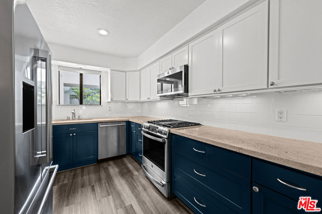Perfectly situated on a quiet residential street in the heart of Sawtelle, this second-floor, two-bedroom, two-bath condo combines timeless comfort with thoughtful modern updates. The home welcomes you with plush carpeting throughout the main living areas, a spacious living room anchored by a fireplace, and an adjacent dining area that opens to a private balcony, a great spot for morning coffee or evening unwinding. The remodeled kitchen is equipped with stainless steel appliances, luxury vinyl plank flooring, generous counter space, and sleek cabinetry offering an abundance of storage. A built-in bar with additional storage adds versatility and a touch of charm. The second bedroom is ideal for guests or a home office, featuring new mirrored closet doors, while the primary suite offers a large walk-in closet, en-suite bath, and a private balcony for relaxing outdoors. Both bathrooms feature tile flooring and updated finishes. Additional highlights include in-unit laundry and two gated side-by-side parking spaces. Enjoy an unbeatable Westside location just moments from Sawtelle's vibrant restaurant row, Brentwood, Santa Monica, Century City, and major commuter routes.