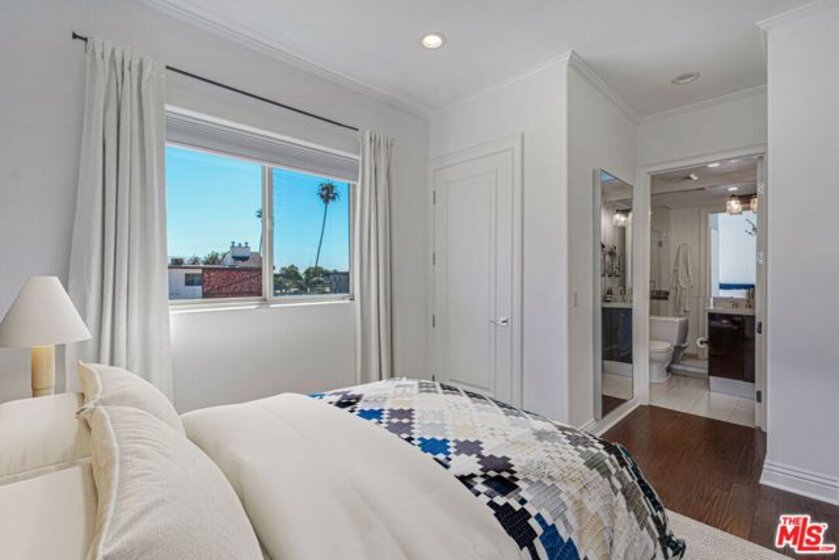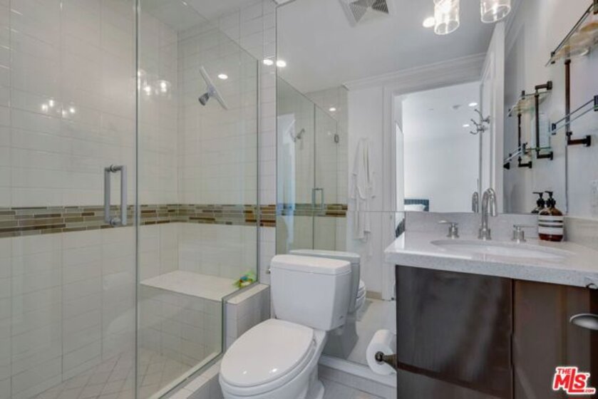 Prime WLA location. Brentwood/Santa Monica adjacent. Spectacular TOP FLOOR CONER UNIT, HIGH CIELINGS w/ balcony. No common walls. Quiet and Private. Two ensuite generously sized bedrooms. Two Door entry, with hall powder room in newer building. High ceilings throughout with recessed lighting and private balcony that leads to a wonderful North-East exposure with views from Brentwood to Century City. Primary suite includes dual walk-in closets and a large spa like bathroom, complete with a separate shower and deep soaking tub. The second bedroom features an en-suite bathroom with a glass-enclosed shower. Kitchen Bosch stainless steel appliances, custom cabinets, Caesar stone counters and Greystone floors. Laundry is in unit with washer and dryer hook-ups. Garage controlled access building w/ gated parking for 2 cars tandem. Located in a small, 7-unit. Front entrance has an "ADA-compliant ramp," "curb ramp" compliance. 2 Garage controlled access designated disabled person garage parking in building for residents. *Balcony inspection approved December 2024. *Romantic fireplace gives off considerable heat. "Fireplace" is to be considered decorative only. See you at the OPEN HOUSE. 1:00 pm -5:00 pm Weekends. First OPEN House 1:00 pm -5:00 pm Saturday and Sunday "March 21 & 22." Caravan Tuesday March 24 11:00 am 2:00 pm.
