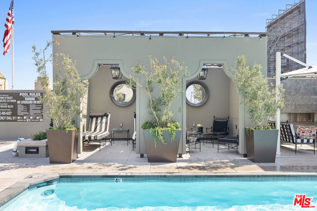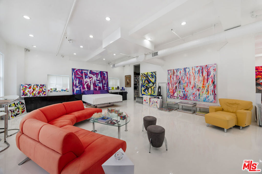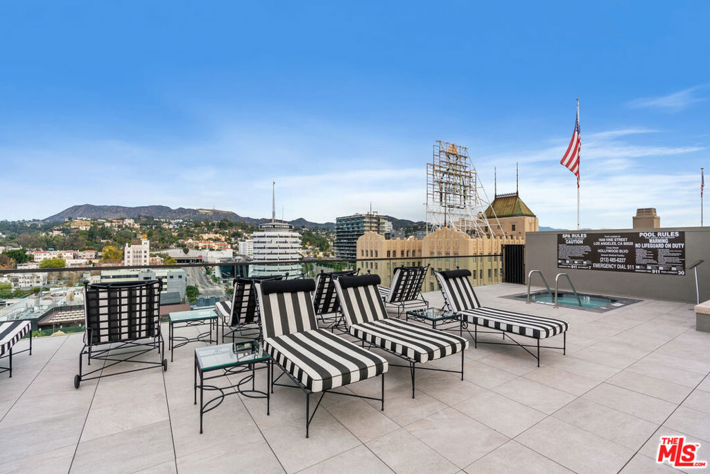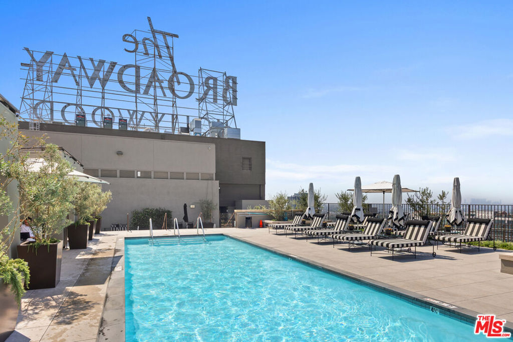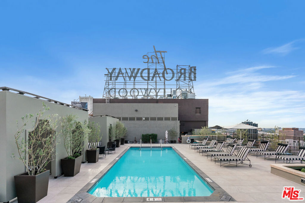 Experience a truly one-of-a-kind loft residence in the iconic Broadway Hollywood - one of Los Angeles' most coveted historic luxury buildings. Not all square footage is created equal, and this expansive 1,700+ sq. ft. showpiece proves it. Reimagined and fully remodeled by multidisciplinary artist Dellamarie Parrilli, this turnkey home blends modern sophistication with timeless character. The light-filled open floor plan is enhanced by soaring ceilings, recessed lighting, and sleek contemporary finishes. A chef-inspired kitchen with high-end appliances flows seamlessly into the living space, while custom built-ins and massive closets provide both style and function. Retreat to the primary suite, featuring a spa-like en-suite bath, infrared dry sauna, and a retractable drop-down 75" TV with an integrated surround sound system. Convenience is built-in with in-unit laundry and thoughtful design throughout. Residents enjoy full-service amenities rivaling a five-star resort: a rooftop deck with panoramic city views, sparkling pool, spa, private cabanas, fire-pit lounge areas, state-of-the-art fitness center, 24/7 concierge and security, and valet parking. Adding to its allure, this Mills Act-designated property offers substantial property tax savings, making it not only a lifestyle upgrade but also a smart investment. Perfectly situated in the heart of Hollywood, steps from world-class dining, shopping, and entertainment - this extraordinary home is waiting for you.
