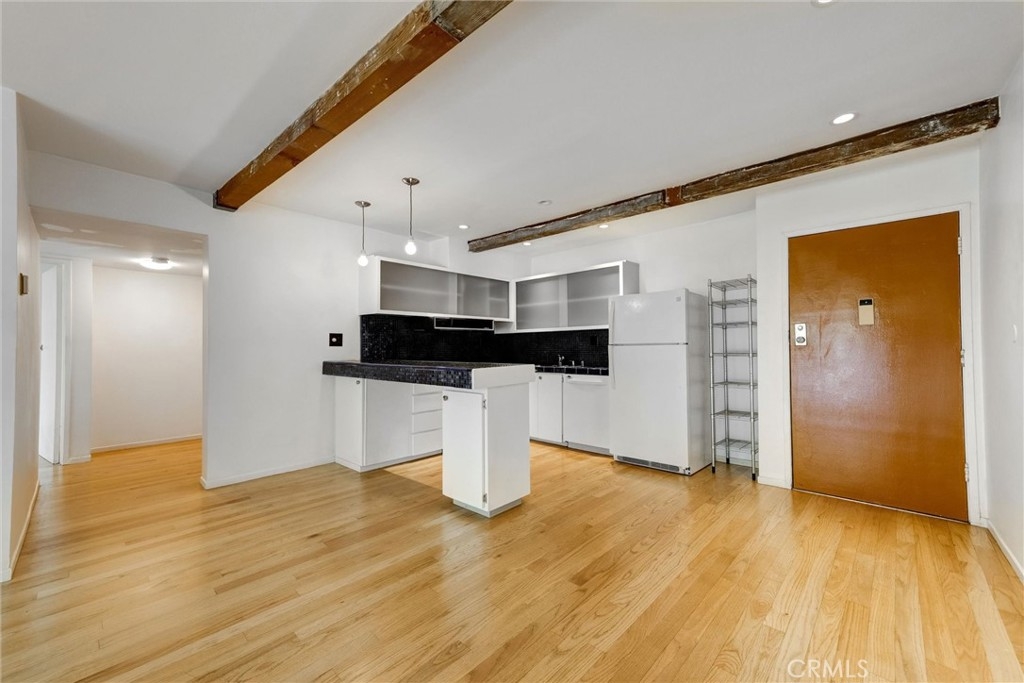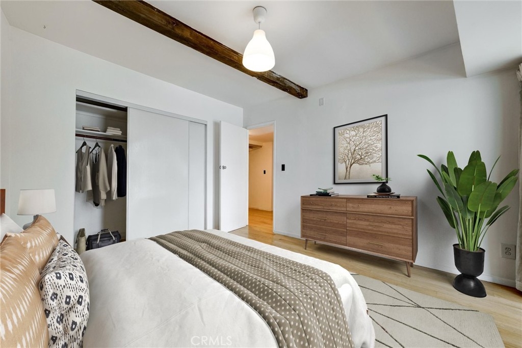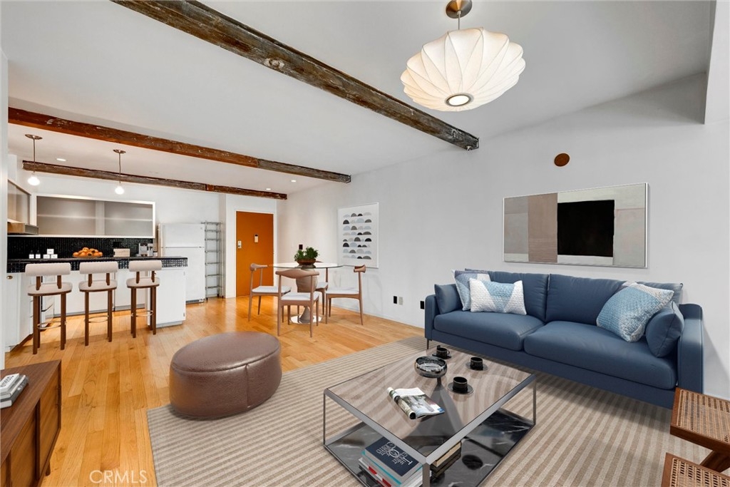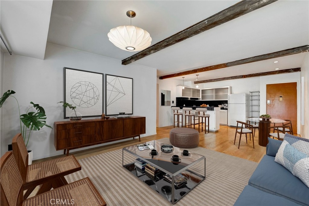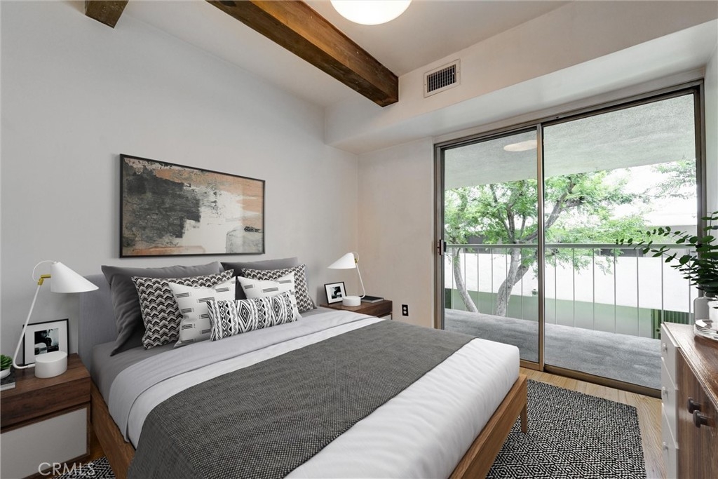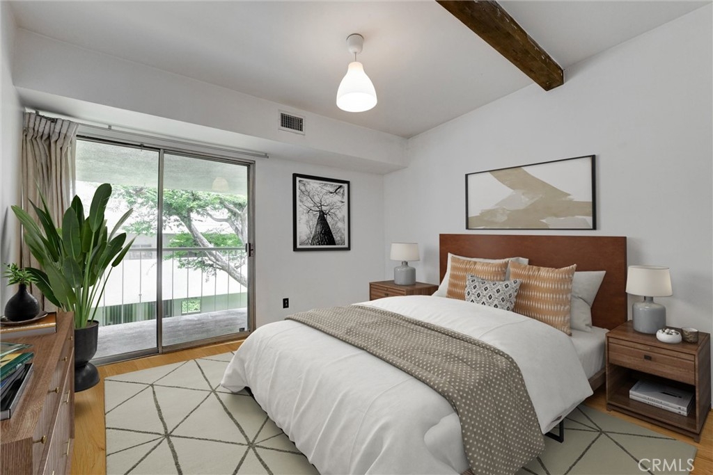 This is your chance to own a condo in the coveted Lago Vista complex, designed by Allyn E. Morris circa 1973! A rare architectural gem, this open floor plan 2 bedroom + bonus room condo (see remarks) is a tranquil oasis in the middle of the city. Living room with exposed beams recalls the original mid-century design. Kitchen with beautifully maintained original tile counters and backsplash is eye-catching. Balcony large enough for lounging and al fresco dining. Two well sized bedrooms, plus an additional room that can be a third bedroom or office (see remarks). Quiet location in the back of the building with serene tree top views. The owners preserved the original features, sourcing Hansgrohe faucets, bakelite switch-plates, and more. Private pool and lounge area with mid-century vibes looks like it is straight out of a Slim Aarons photograph. Two assigned parking spaces with close access to the unit. The location is a star with the best of Echo Park, Silver Lake, and Sunset Junction a minute away. Own a piece of architectural history at Lago Vista.